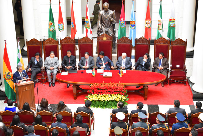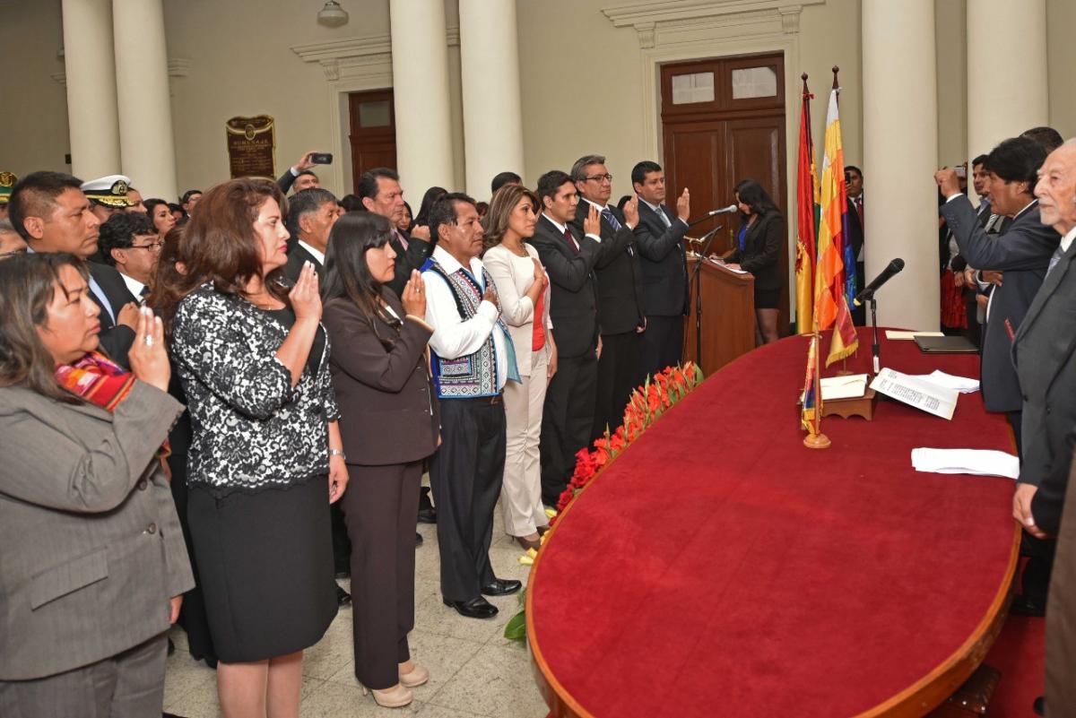En el marco de una ceremonia solemne, cumplida en ambientes del Tribunal Supremo de Justicia, el presidente del Estado Evo Morales Ayma ministró posesión a los magistrados titulares y suplentes del Tribunal Constitucional Plurinacional, autoridades que, a partir de la fecha, estarán a cargo de la administración de justicia constitucional por los próximos seis años.