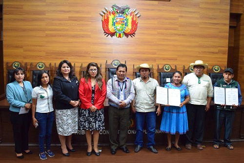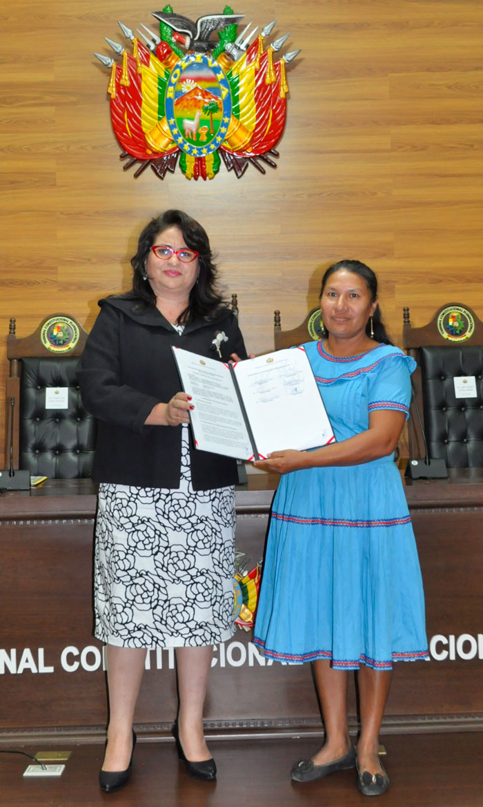 El municipio de Azurduy del departamento de Chuquisaca y la Nación Monkóxɨ del Territorio de Lomerío de Santa Cruz, recibieron las Declaraciones Constitucionales Plurinacionales (DCP) de su Carta Orgánica Municipal (COM) y del Estatuto Autonómico Indígena, respectivamente.