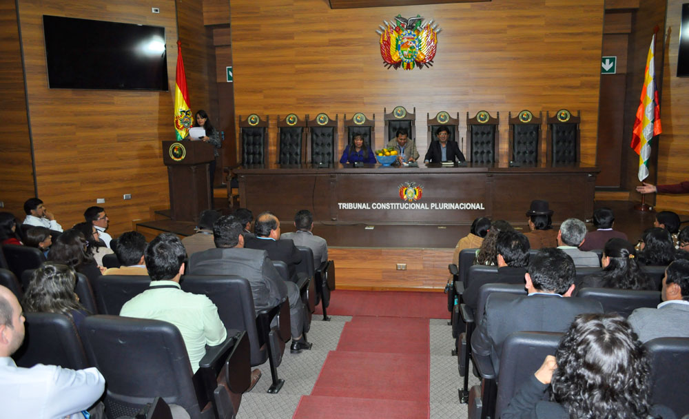 El acto se realizó en el Salón de Honor del TCP de Bolivia con la participación de las autoridades del Gobierno Autónomo Municipal de Sorata, Dr. Petronilo Flores Condori, Presidente, y MSc. Brígida Celia Vargas Barañado y Orlando Ceballos Acuña, Magistrados de ésta institución.