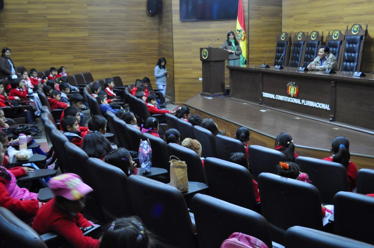 El Tribunal Constitucional Plurinacional (TCP) de Bolivia, recibió la visita de estudiantes del nivel primario del colegio Loyola de Fe y Alegría, acompañados por maestras y padres de familia.
