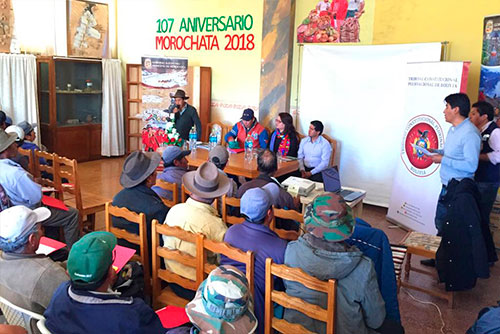 Dando continuidad al proceso de difusión y socialización sobre la justicia constitucional, la MSc. Karem Lorena Gallardo Sejas, Magistrada elegida por el departamento de Cochabamba y el equipo técnico del Tribunal Constitucional Plurinacional (TCP) de Bolivia, se dieron cita en el municipio de Morochata, provincia Ayopaya del departamento de Cochabamba.