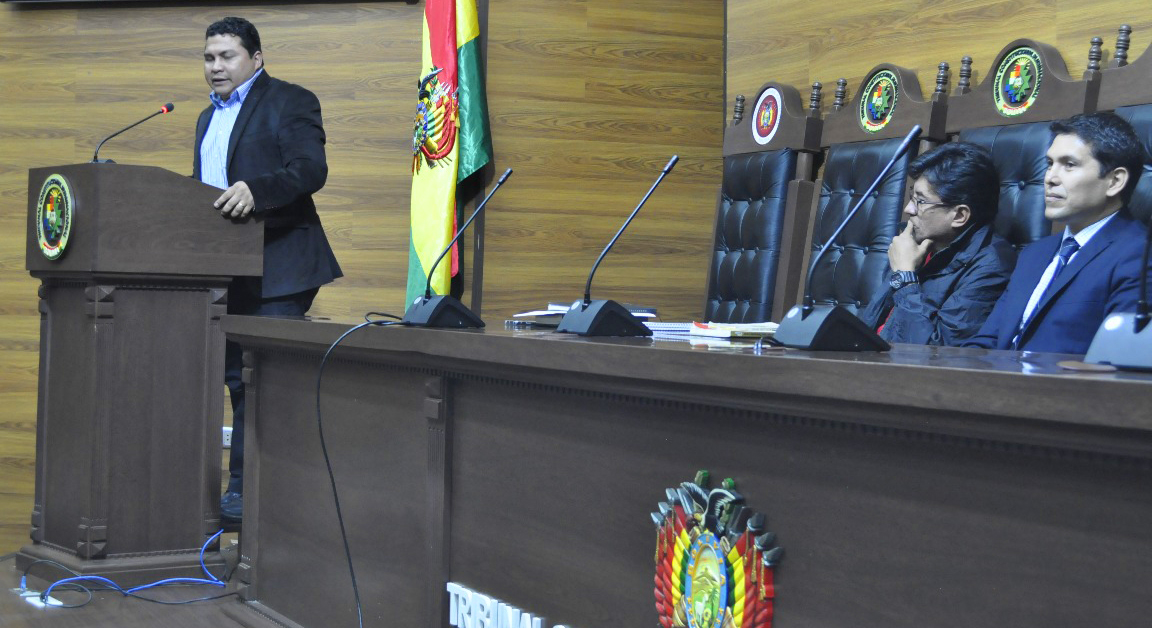 La entrega del proyecto al Magistrado, Orlando Ceballos Acuña en representación del TCP de Bolivia, estuvo a cargo de la Dra. Ana Paula Valenzuela de Palomo, Presidenta del Concejo del Gobierno Autónomo Municipal de Cobija.