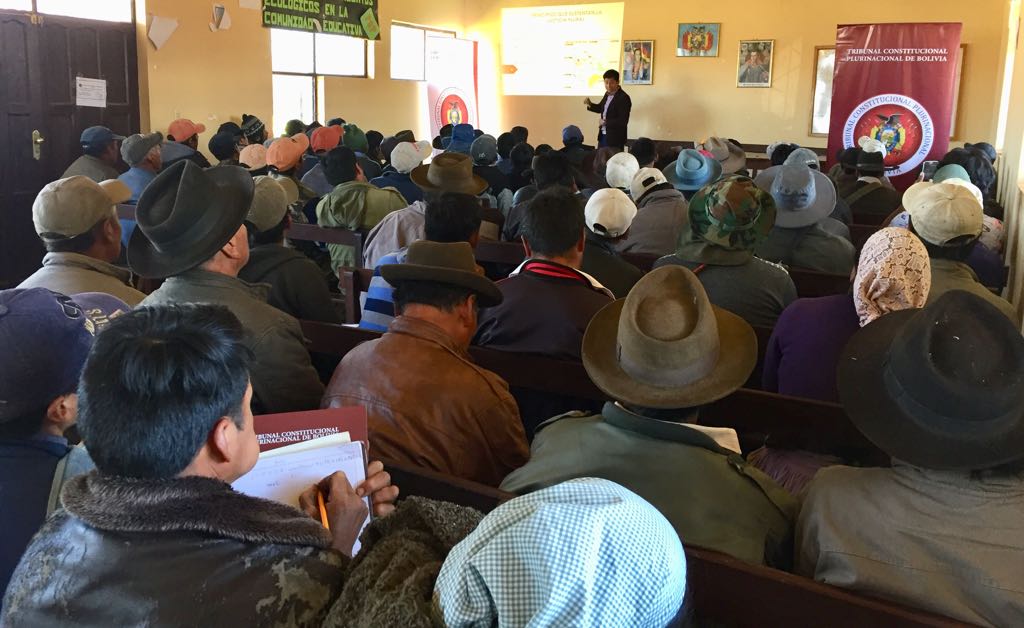 El Tribunal Constitucional Plurinacional (TCP) de Bolivia, llevó adelante un taller de socialización donde se abordó varias temáticas como ser: atribuciones y competencias de la institución, derechos fundamentales, garantías constitucionales y la Jurisdicción Indígena Originaria Campesina, desde una perspectiva intercultural.