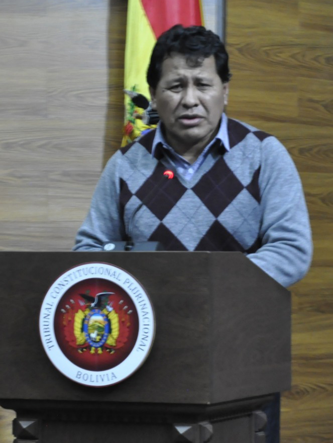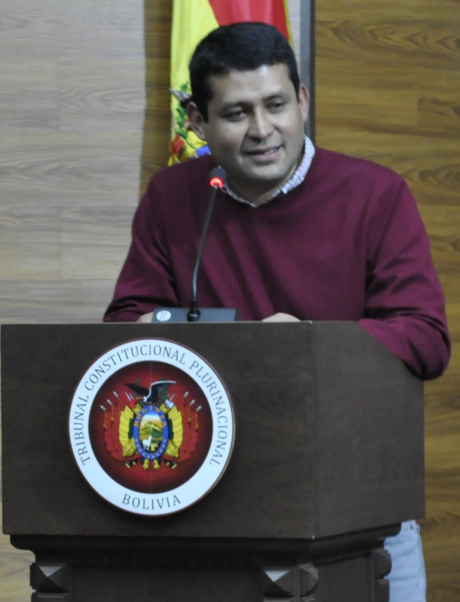 En el acto realizado, el Dr. Petronilo Flores Condori, Presidente del TCP de Bolivia, dio la bienvenida a Nelson Arrázola Gonzáles, Presidente del Concejo del Gobierno Autónomo Municipal de Puerto Rico, que arribó a la ciudad de Sucre para hacer entrega del proyecto indicado