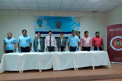 El Tribunal Constitucional Plurinacional (TCP) de Bolivia realizó la entrega de la Declaración Constitucional Plurinacional (DCP) 0086/2018 de 24 de octubre, a las autoridades del municipio de San Julián de la provincia Ñuflo de Chávez del departamento de Santa Cruz.