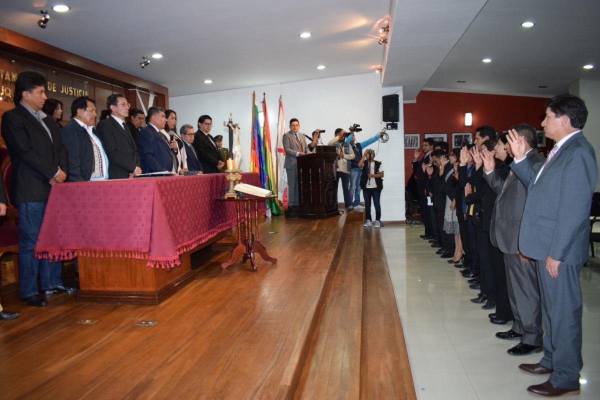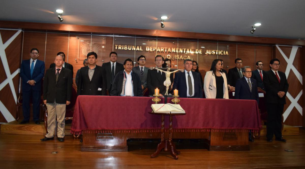 Finalmente se posesionaron a los nuevos jueces y vocales para ese Distrito que se dieron cita en el Salón de Honor del Tribunal Departamental de Justicia de Chuquisaca.