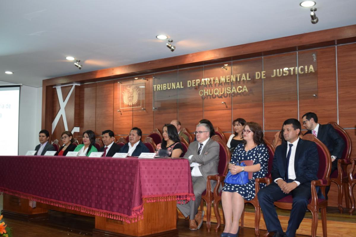 Los más de 400 asistentes entre autoridades, jueces, fiscales, profesionales en el área del derecho, servidores públicos de las instituciones que forman parte del Órgano Judicial y del TCP de Bolivia así como estudiantes de Derecho que se dieron cita en el Salón de Honor del Tribunal Departamental de Justicia de Chuquisaca recibieron al cierre del evento su certificado de participación.
