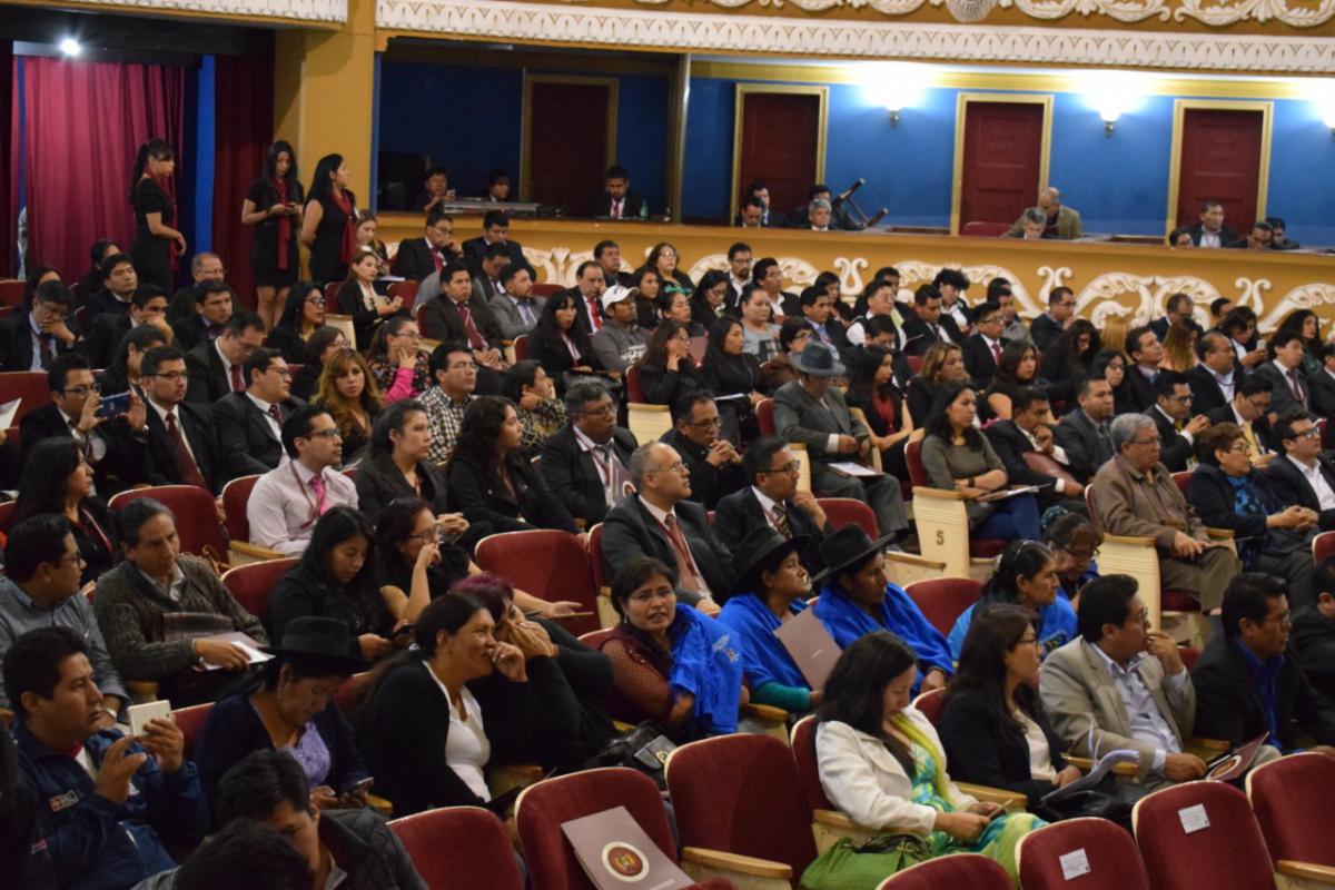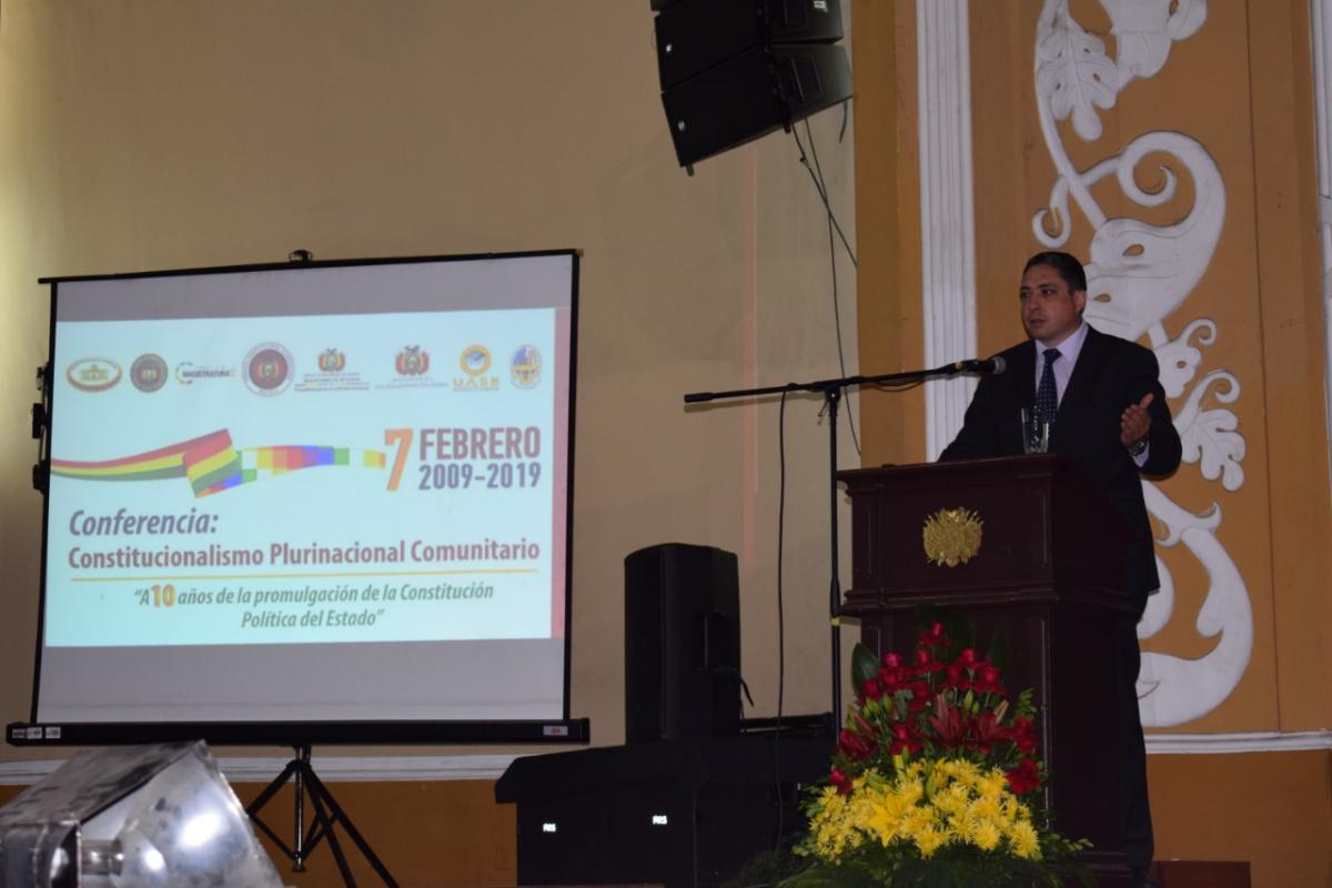 El Tribunal Constitucional Plurinacional (TCP) de Bolivia, a través de la Academia Plurinacional de Estudios Constitucionales (APEC), realizó la Conferencia: Constitucionalismo Plurinacional Comunitario “A 10 años de la promulgación de Constitución Política del Estado”, realizada en el Teatro Gran Mariscal Sucre.