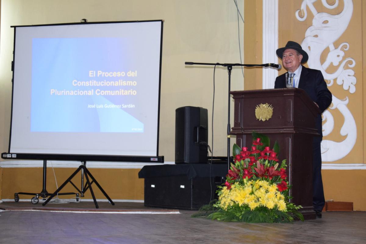 La jornada académica contó con las exposiciones denominadas “Constitucionalismo plurinacional comunitario: Un enfoque desde la perspectiva del proceso constituyente boliviano” y “Proceso constituyente boliviano” por Orlando Ceballos Acuña, Magistrado elegido por el departamento de Chuquisaca y el Lic. José Luis Gutiérrez Sardán, Rector de la Universidad Andina Simón Bolívar respectivamente.