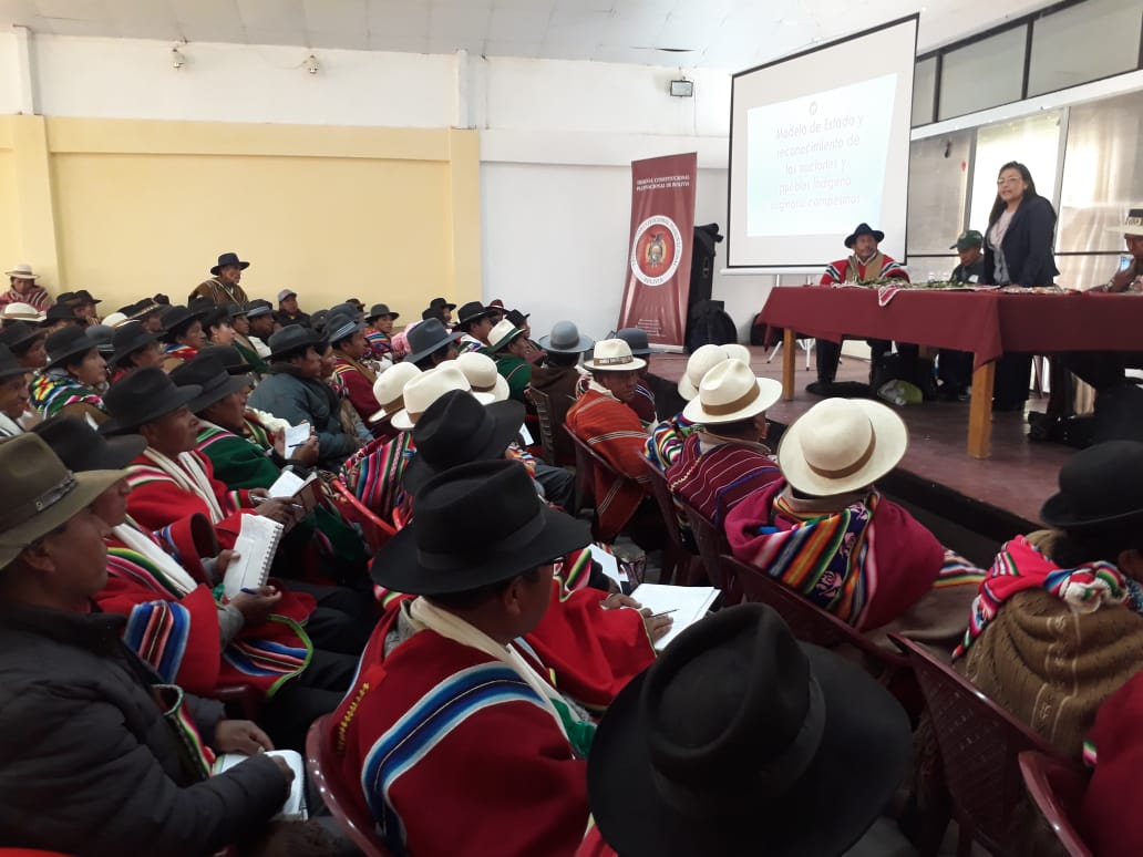 En el marco de las actividades académicas que realiza el Tribunal Constitucional Plurinacional (TCP) de Bolivia, a iniciativa de la MSc. Georgina Amusquivar Moller, Magistrada elegida por el departamento de Oruro, se realizó el Taller sobre “Justicia Indígena Originaria Campesina (JIOC) y Deslinde Jurisdiccional” en los municipios de Challapata y Caracollo de ese departamento.
