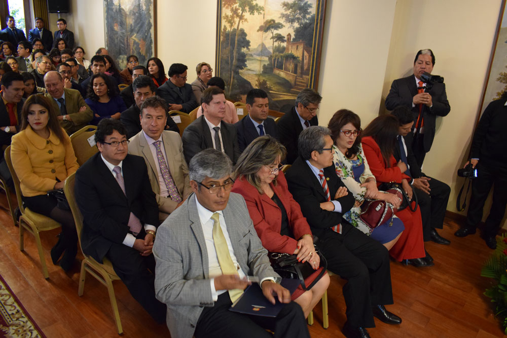 El Tribunal Constitucional Plurinacional (TCP) de Bolivia, con la representación del Dr. Petronilo Flores Condori, Presidente, las Magistradas y los Magistrados MSc. Karem Lorena Gallardo Sejas, MSc. Brígida Celia Vargas Barañado, René Yván Espada Navía, Gonzalo Miguel Hurtado Zamorano, Orlando Ceballos Acuña y MSc. Julia Elizabeth Cornejo Gallardo, participó en la Rendición Pública de Cuentas Final 2018 e Inicial 2019 de la Fiscalía General del Estado.