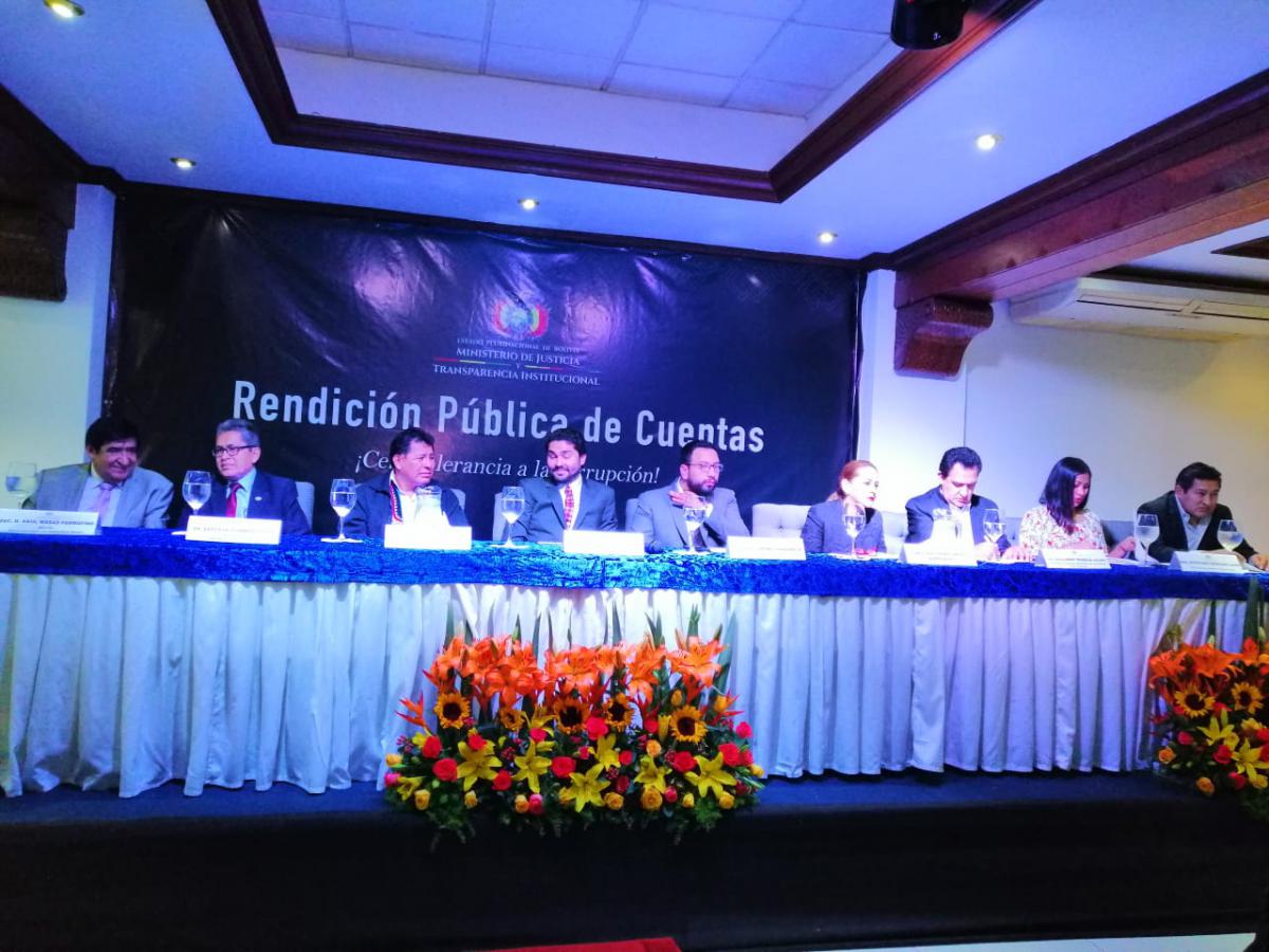 En cumplimiento a lo establecido por la Constitución Política del Estado y la Política Nacional de Transparencia y Lucha Contra la Corrupción, el mencionado evento se desarrolló en la ciudad de Santa Cruz, que contó con la participación de autoridades del sistema judicial, departamentales y municipales.