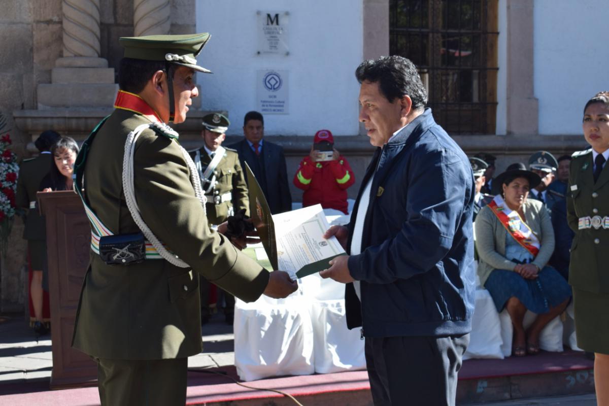 El Tribunal Constitucional Plurinacional (TCP) de Bolivia, a la cabeza de su Presidente, Dr. Petronilo Flores Condori, participó del homenaje realizado por la Policía Boliviana del departamento de Chuquisaca en conmemoración de sus 193 años de creación.