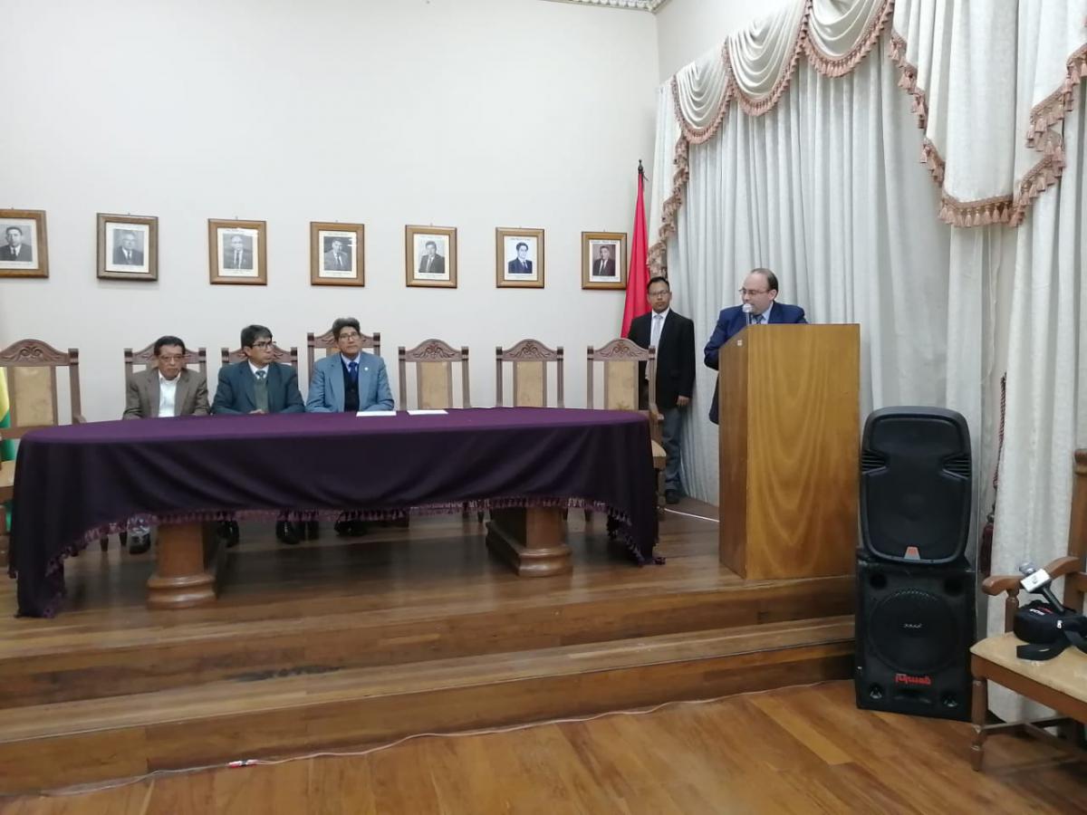 El Tribunal Constitucional Plurinacional (TCP) de Bolivia, representado por el MSc. Paul Enrique Franco Zamora, Magistrado electo por el departamento de Chuquisaca y la Universidad de San Francisco Xavier (USFX), a través de su Rector, Dr. Sergio Padilla Cortez, inauguraron el Diplomado en Derecho Constitucional con mención en Argumentación Jurídica y Razonamiento Judicial con el objetivo de contribuir a una mejor cualificación de los profesionales en Derecho en la ciudad de Sucre.