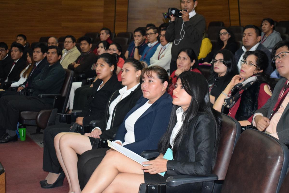 Por su parte, la Dra. Fátima Elva Tardío Quiroga, Decana de la Facultad de Derecho, Ciencias Políticas y Sociales de esta Casa Superior de Estudios, agradeció al TCP de Bolivia por otorgar la oportunidad a estudiantes de la carrera de los últimos años de la carrera de Derecho.