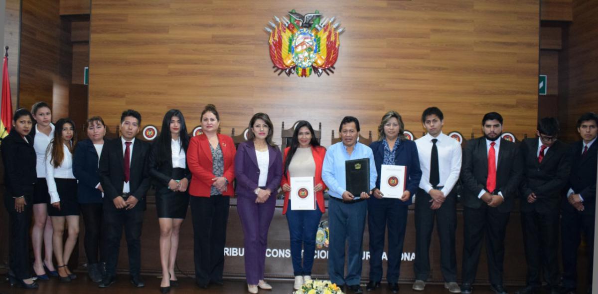 El Tribunal Constitucional Plurinacional (TCP) de Bolivia, representado por su presidente, Dr. Petronilo Flores Condori, MSc. Karem Lorena Gallardo Sejas, Magistrada electa por el departamento de Cochabamba y MSc. Julia Elizabeth Cornejo Gallardo, Magistrada electa por el departamento de Tarija, suscribieron un Convenio Específico con la Facultad de Derecho, Ciencias Políticas y Sociales de la Universidad Mayor, Real y Pontificia de San Francisco Xavier de Chuquisaca (UMRPSFXCH) y la presentación de practicantes laborales.