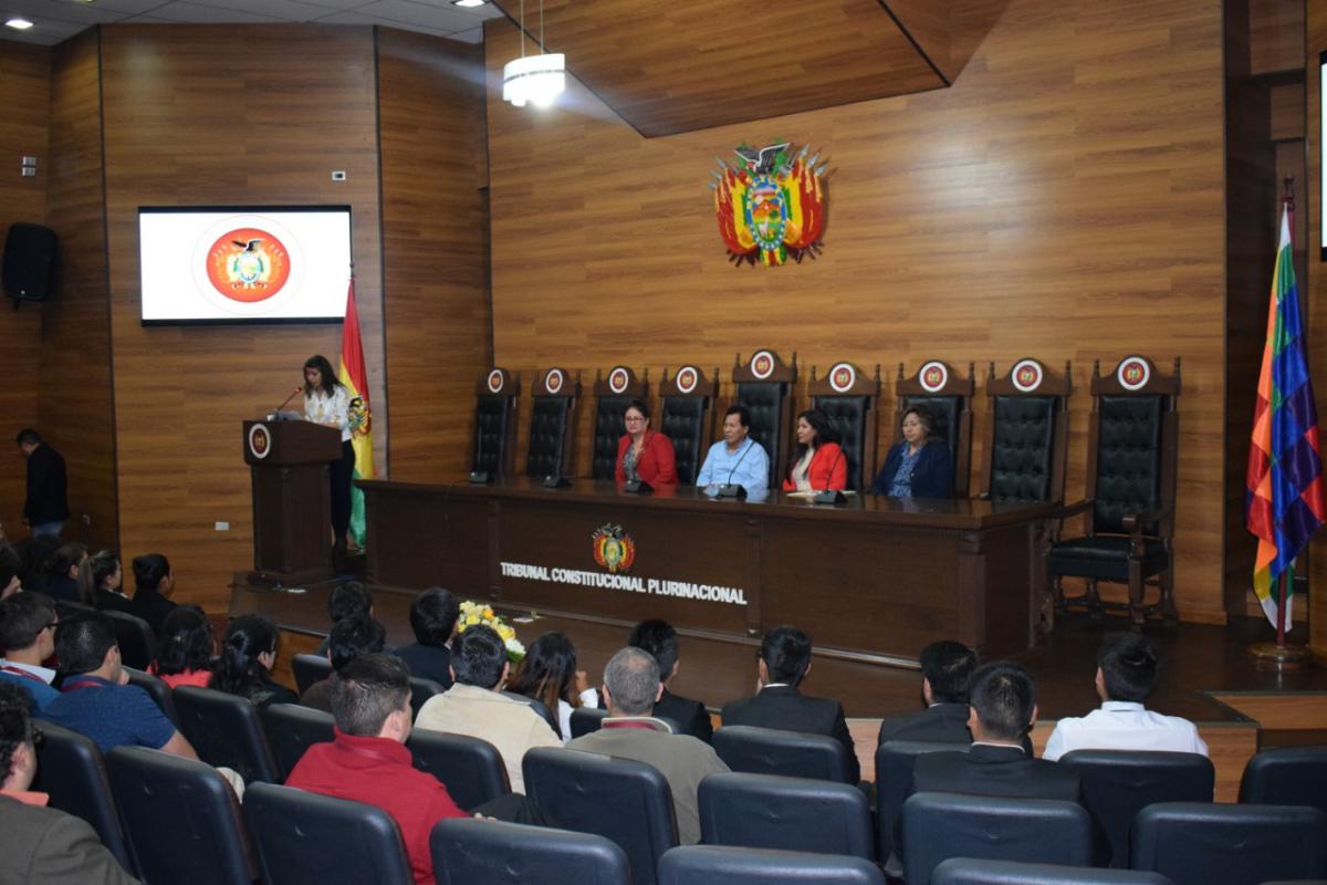 En palabras de bienvenida el Presidente del TCP de Bolivia, resaltó la importancia de la formación de jóvenes profesionales de la carrera de Derecho en el área Constitucional.
