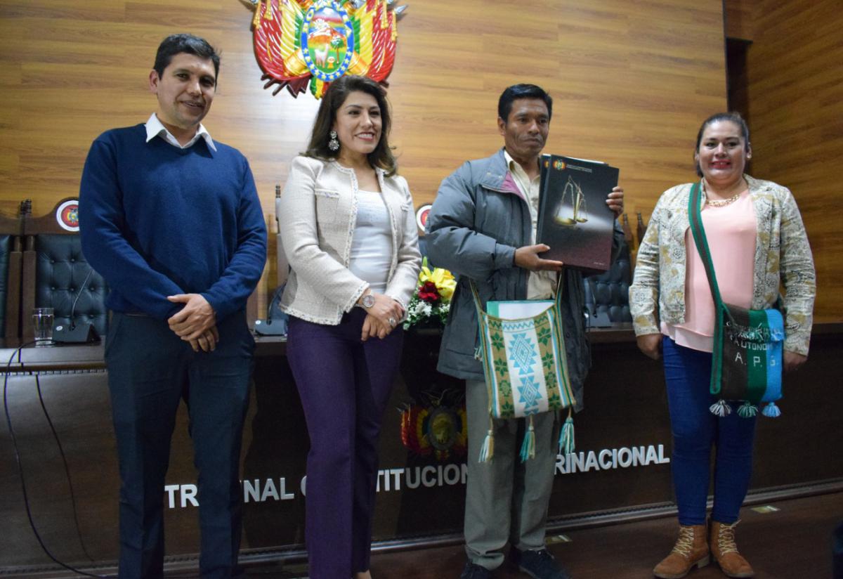 El Tribunal Constitucional Plurinacional (TCP) de Bolivia, con la representación del Dr. Petronilo Flores Condori, Presidente, la MSc. Julia Elizabeth Cornejo Gallardo, Magistrada electa por el departamento de Tarija y el MSc. Carlos Alberto Calderón Medrano, Magistrado electo por el departamento de Santa Cruz, realizó la entrega de la Declaración Constitucional Plurinacional (DCP) 0062/2019 de la Autonomía Indígena Guaraní Kereimba Iyaambae, perteneciente al municipio de Gutiérrez del departamento de Santa Cruz.