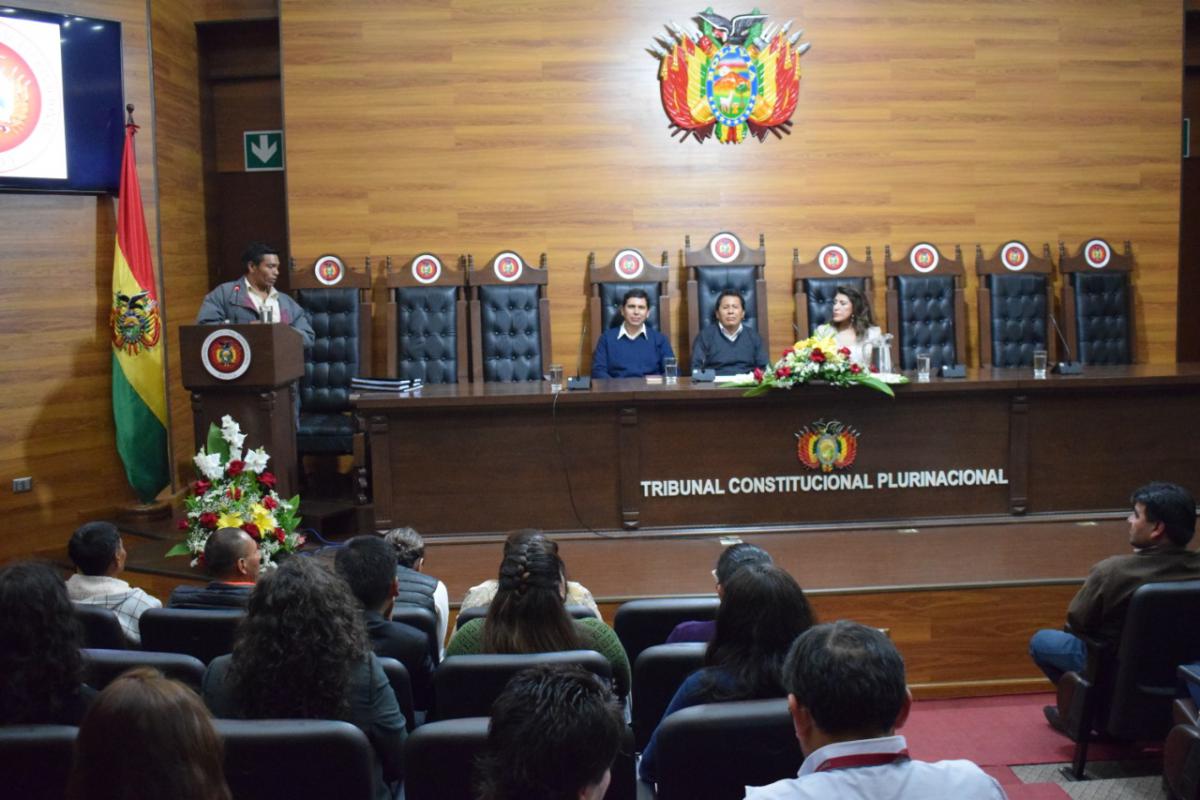 A tiempo de dar la bienvenida el referido Magistrado del departamento de Santa Cruz, resaltó la importancia de la compatibilidad del proyecto de Estatuto de Autonomía Indígena con la Constitución Política del Estado (CPE).