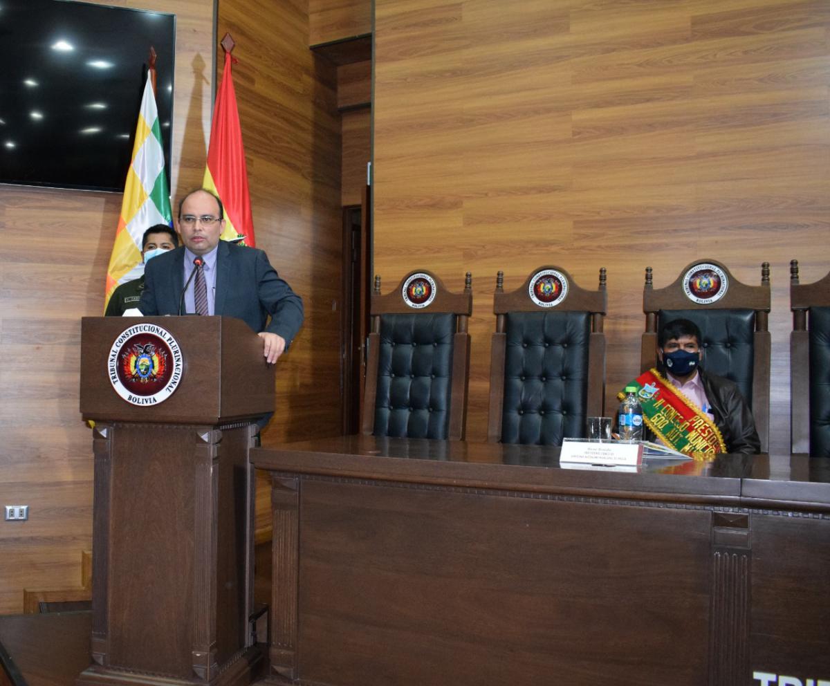 “Felicito y auguro continuar con el mismo ímpetu en la búsqueda del anhelado desarrollo, del progreso que queremos todos los bolivianos y ver que ese lugar donde vivimos tenga un mejor futuro”, resaltó el Presidente del TCP de Bolivia a tiempo de destacar la entrega del DCP al municipio de Palca.