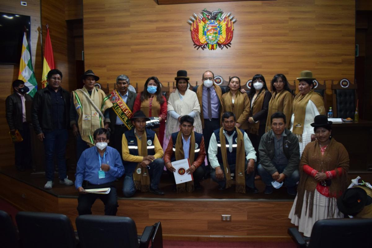 En representación del Gobierno Autónomo Municipal del Municipio de Palca, del departamento de La Paz, una numerosa delegación compuesta por el Alcalde, Concejalas, Concejales, Asambleístas, representantes de la Central Agraria Tupac Katari, Representantes de la Federación de Mujeres Bartolina Sisa, recibieron de parte del Tribunal Constitucional Plurinacional (TCP) de Bolivia, la Declaratoria de Constitucionalidad (DCP) 0067/2019 de 04 de octubre, correlativo a las DCP 0099/2018 de 12 de noviembre y 0097/2017 de 15 de noviembre, correspondientes al Proyecto de Carta Orgánica Municipal (COM).