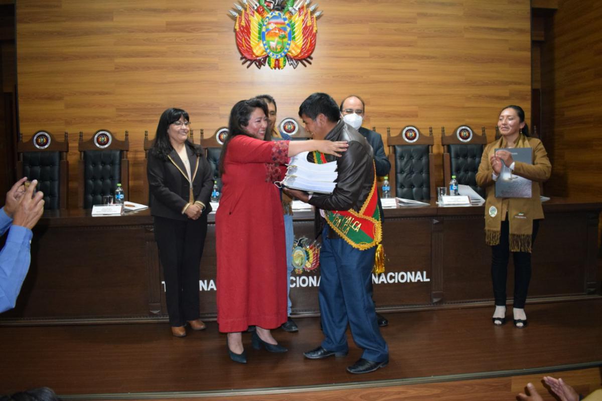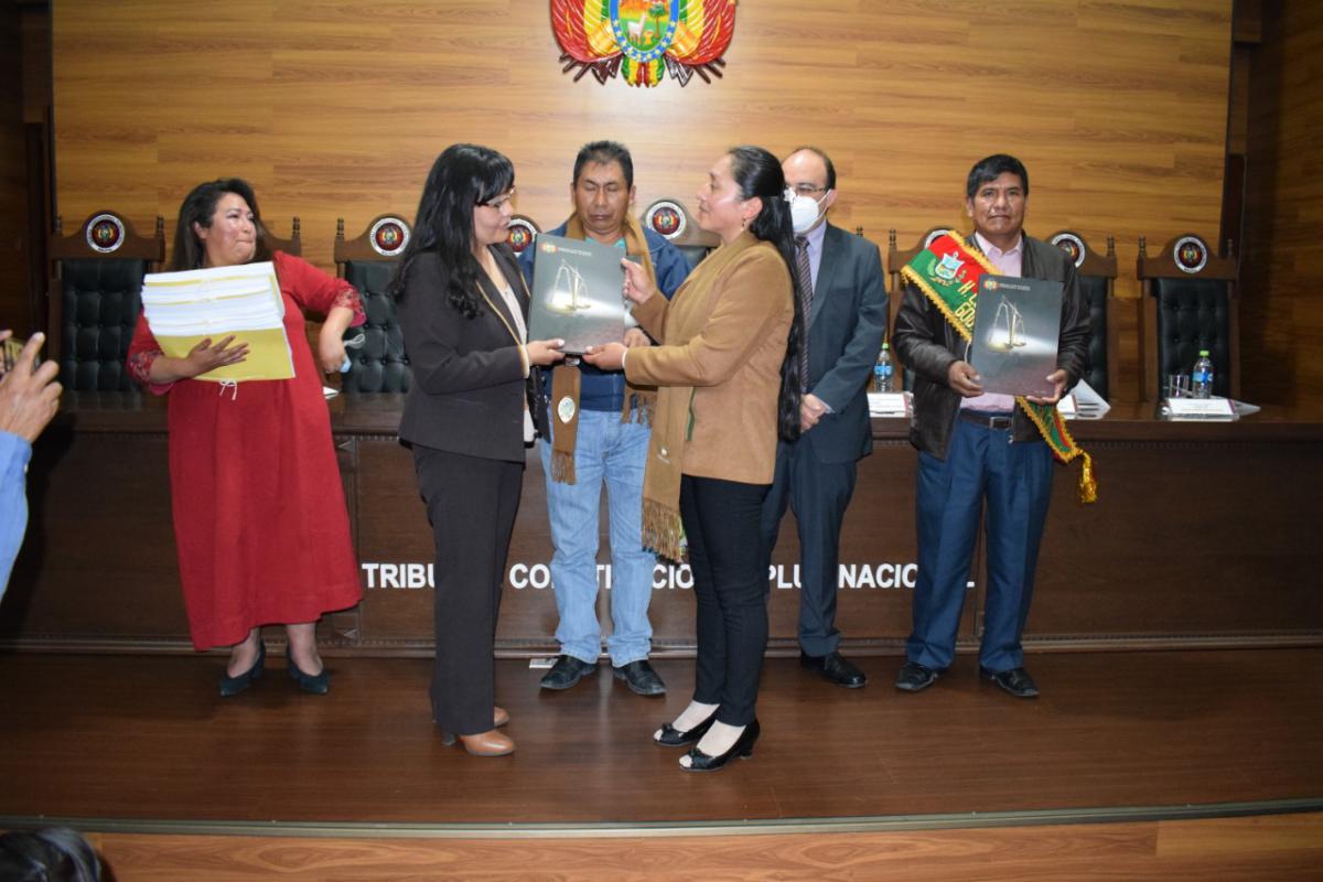 La MSc. Georgina Amusquivar Moller, en su calidad de Magistrada relatora, resaltó en esfuerzo realizado por las autoridades municipales, que tras una ardua revisión del Proyecto de la COM de compatibilidad con la CPE, ya se cuenta con la DCP correspondiente.