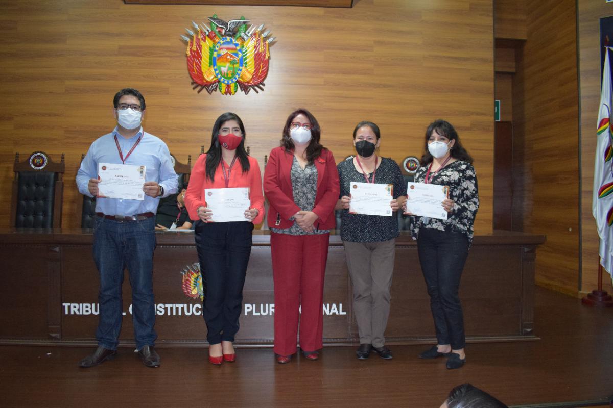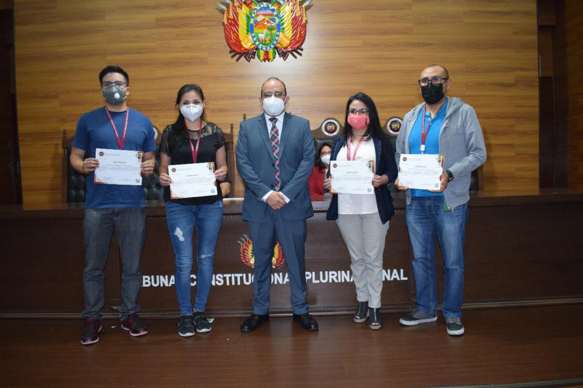 El Tribunal Constitucional Plurinacional (TCP) de Bolivia, a través de la Academia Plurinacional de Estudios Constitucionales (APEC) y en el marco de las actividades académicas que realiza, procedió a la entrega de certificados a los promedios más altos dentro del programa de Capacitación Virtual “Herramientas para el Fortalecimiento del Teletrabajo y la Capacitación” – Versión I y II.