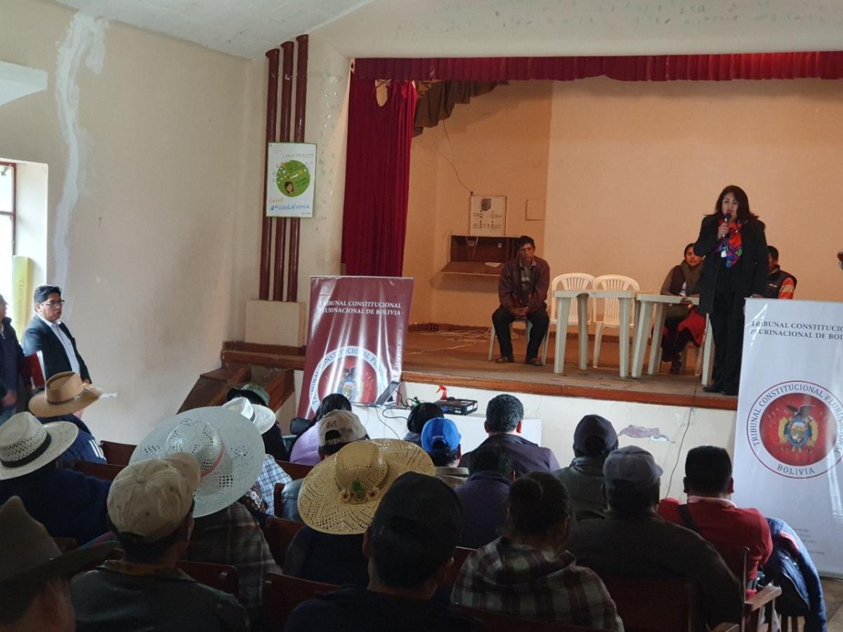 El Tribunal Constitucional Plurinacional (TCP) de Bolivia, a iniciativa de la MSc. Karem Lorena Gallardo Sejas, Magistrada electa por el departamento de Cochabamba, desarrolló el SEMINARIO: “TRIBUNAL CONSTITUCIONAL PLURINACIONAL Y JURISDICCIÓN INDÍGENA ORIGINARIA CAMPESINA”, realizado en el municipio de Pocona, tercera sección de la provincia Carrasco del departamento de Cochabamba.