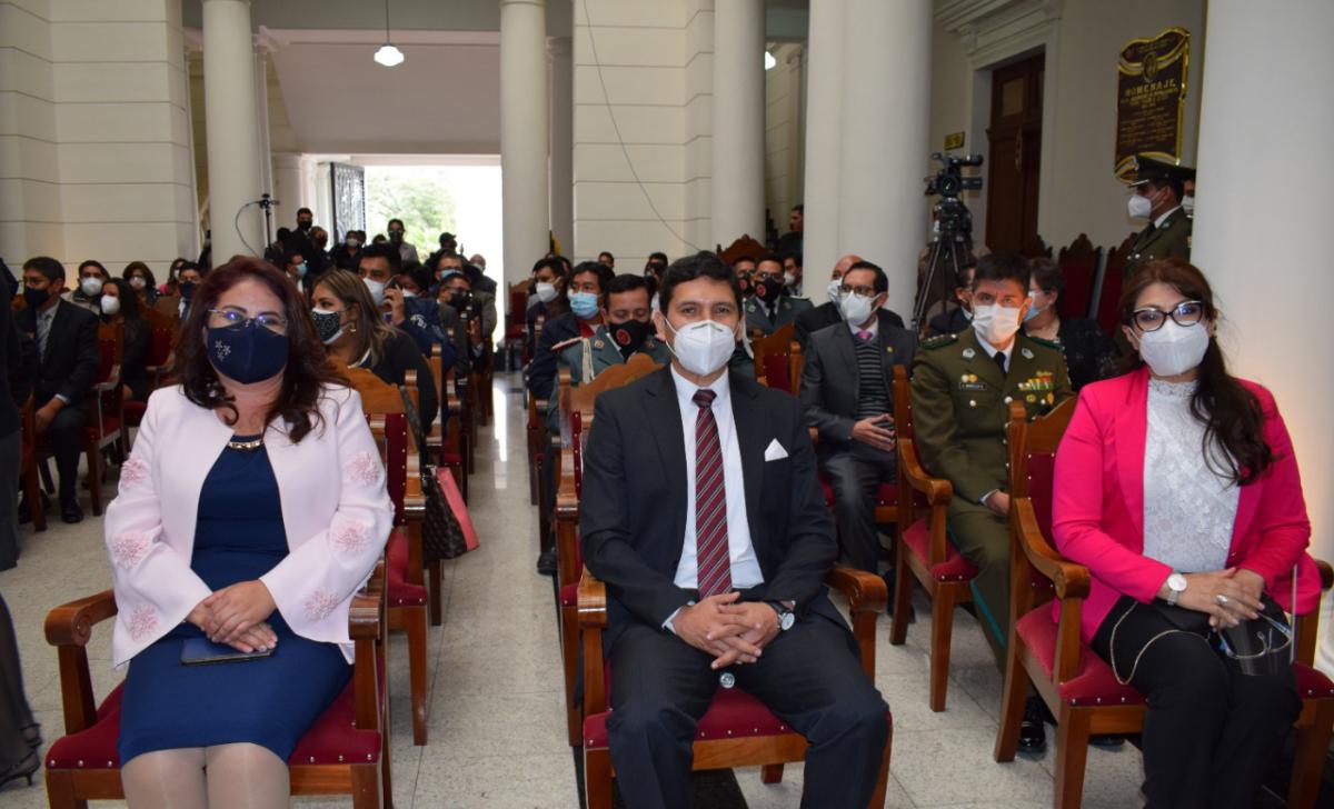 En el evento también estuvieron presentes, Juan Lanchipa Ponce, Fiscal General del Estado, Wilfredo Chávez Serrano, Procurador General del Estado, Nadia Cruz Tarifa, Defensora del Pueblo y Magistradas, Magistrados del Tribunal Agroambiental, Consejo de la Magistratura, entre otras autoridades.