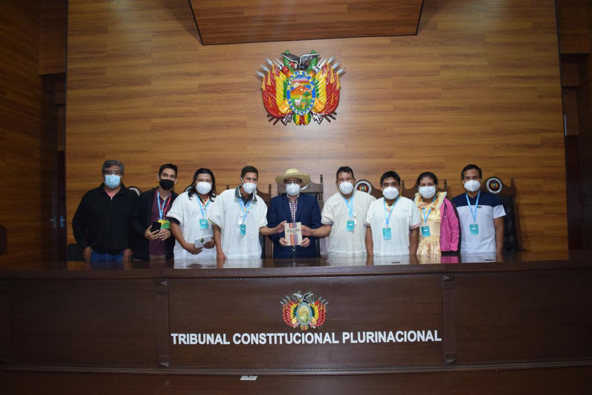 Minutos después, otra delegación fue recibida en el Tribunal Constitucional Plurinacional. Los representantes del Territorio Indígena Multiétnico (TIM) presentaron su proyecto de Estatuto Autonómico Indígena para el respectivo control de constitucionalidad.