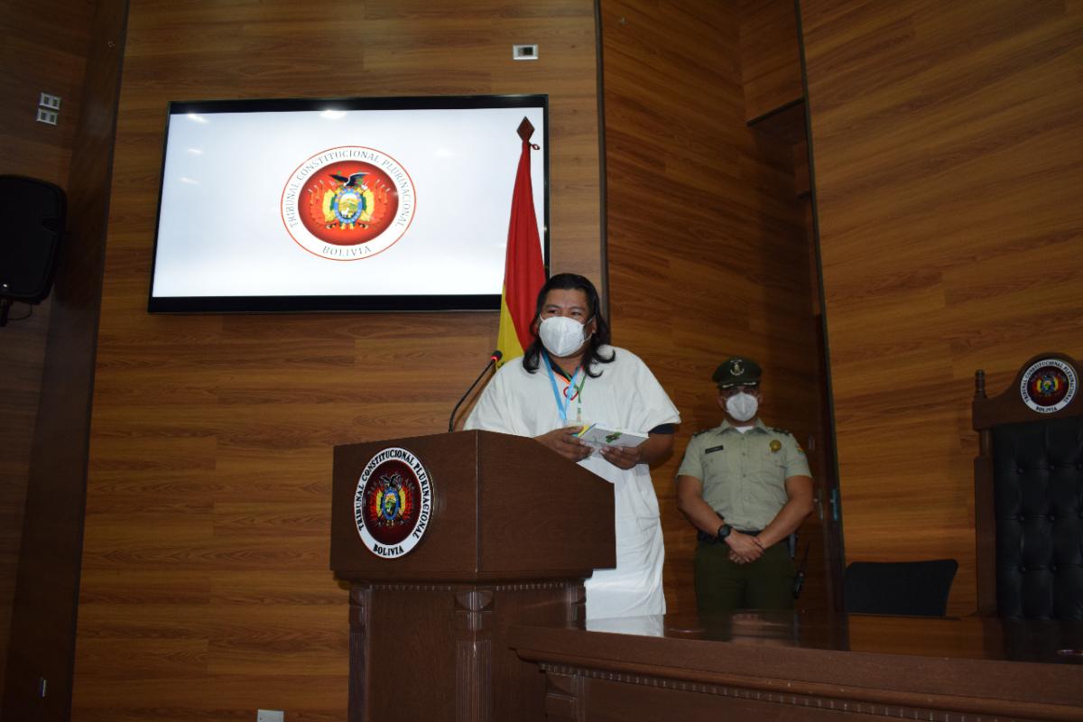 “Valoramos este esfuerzo que realizan para contar con un estatuto autonómico que con seguridad para su pueblo representa la posibilidad de desarrollo y progreso”, manifestó el Presidente del TCP al recibir el proyecto de Estatuto Autonómico Indígena de Huacaya, con las adecuaciones realizadas en cuatro artículos para superar el control de constitucionalidad establecido por Ley y así continuar con el proceso autonómico.