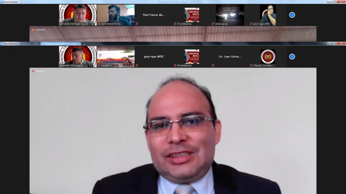El curso gratuito “Principios, Derechos y Garantías Constitucionales sobre la protección de personas privadas de libertad” fue organizado por la Academia Plurinacional de Estudios Constitucionales del TCP, en coordinación con la Dirección Nacional de Régimen Penitenciario cuyo representante, Lic. Juan Carlos Limpias Esprella, destacó la iniciativa.