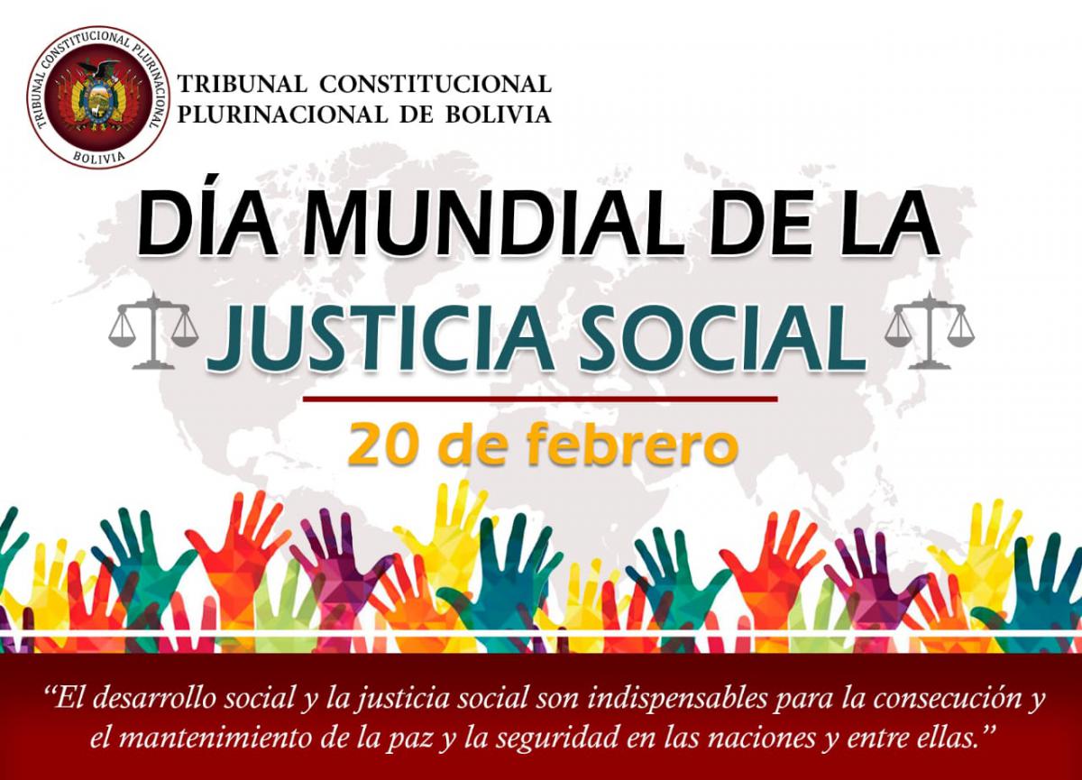 DÍA MUNDIAL DE LA JUSTICIA SOCIAL Publicación de la entrada:20 de febrero de 2021 Categoría de la entrada:Noticias Etiquetas: Noticias Leer más artículos Entrada anteriorINVITACIÓN Siguiente entradaDÍA INTERNACIONAL DE LA LENGUA MATERNA También podría gustarte INVITACIÓN 1 de febrero de 2023 MAGISTRADA ELIZABETH CORNEJO GALLARDO RINDE HOMENAJE AL CENTENARIO DEL NACIMIENTO DE LA CIUDAD DE BERMEJO EN EL DEPARTAMENTO DE TARIJA, EN LA FRONTERA SUR DE BOLIVIA 29 de agosto de 2022 EN CARAPARÍ, TARIJA: MAGISTRADA ELIZABETH CORNEJO GALLARDO REALIZÓ CONFERENCIA MAGISTRAL SOBRE “JUSTICIA CONSTITUCIONAL PLURAL” 23 de junio de 2022