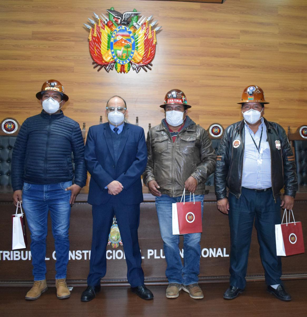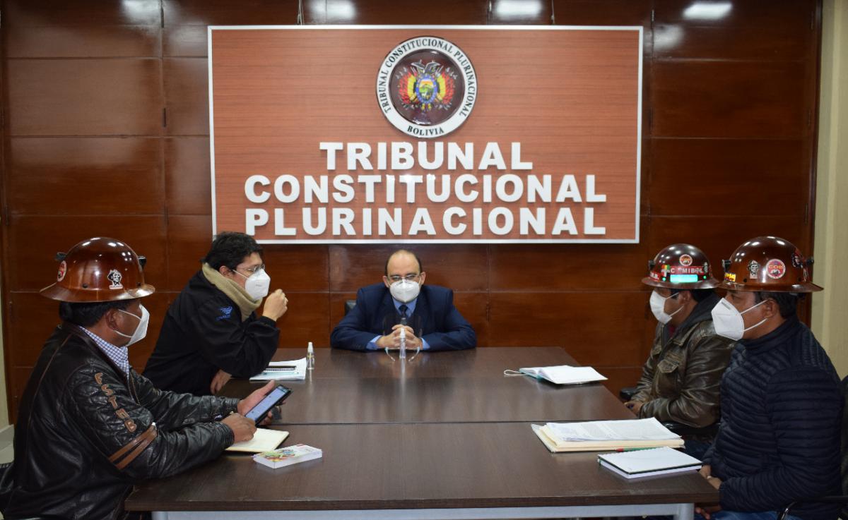 El Tribunal Constitucional Plurinacional (TCP) recibió a dos delegaciones que llegaron hasta su sede el día jueves 18 de marzo de 2021, con diversos fines. Una delegación edil del Municipio de San Pedro de Tiquina, en el departamento de La Paz, llegó con su proyecto autonómico de Carta Orgánica Municipal para control de constitucionalidad y, una segunda, la representación de la Federación Sindical de Trabajadores Mineros de Bolivia mantuvo una audiencia informativa sobre los procesos judiciales en la relación laboral obrero patronal.