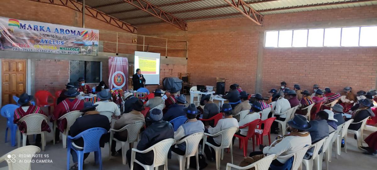 El evento se desarrolló el 17 de abril de 2021 en la comunidad de Aroma de la Provincia Ladislao Cabrera del departamento de Oruro. Del taller participaron autoridades originarias de la Marka Aroma.