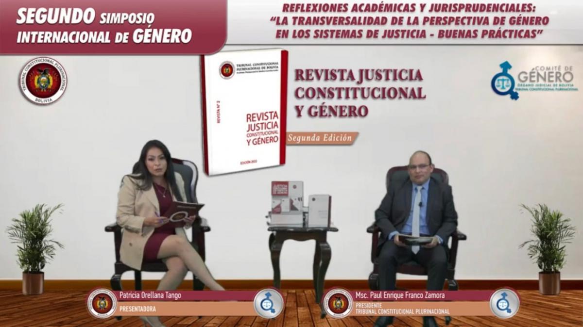 En la segunda jornada de realización del Simposio Internacional de Género, el Tribunal Constitucional Plurinacional, presentó la Segunda Edición de la Revista “Justicia Constitucional y Género” y el Boletín Informativo “Justicia Constitucional con Perspectiva de Género”, documentos producidos en el marco de su Política institucional con este enfoque.