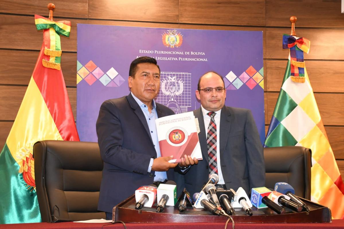 “Ambas propuestas han sido elaboradas por el Tribunal Constitucional Plurinacional, aprobados en su Sala Plena, en virtud a ello y en ejercicio a las facultades que la normativa nos confiere y como representante de este Ente Constitucional, hago entrega de manera pública estos proyectos, invitando al debate para aportar al mejoramiento de los mismos”, remarcó el Presidente del Tribunal Constitucional Plurinacional.