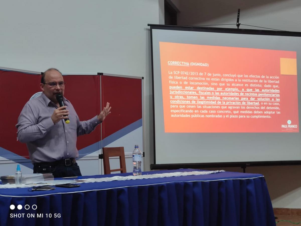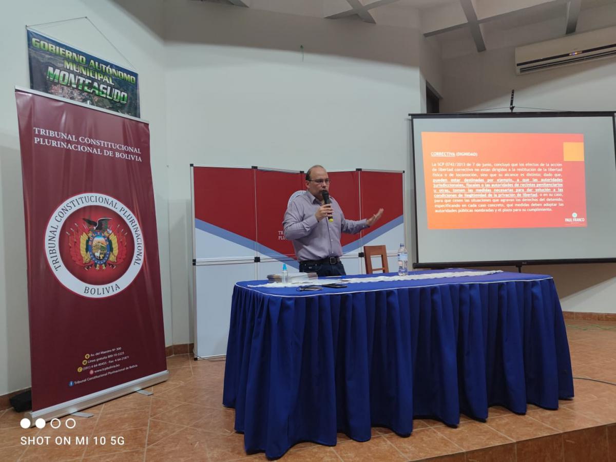El Presidente del Tribunal Constitucional Plurinacional (TCP), MSc. Paul Enrique Franco Zamora, a invitación del Gobierno Autónomo Municipal de Monteagudo, participó como expositor en el seminario presencial sobre la “Acción de Libertad”, dirigido a estudiantes de derecho de la Universidad Salesiana, abogadas, abogados, servidoras y servidores públicos de ese municipio.
