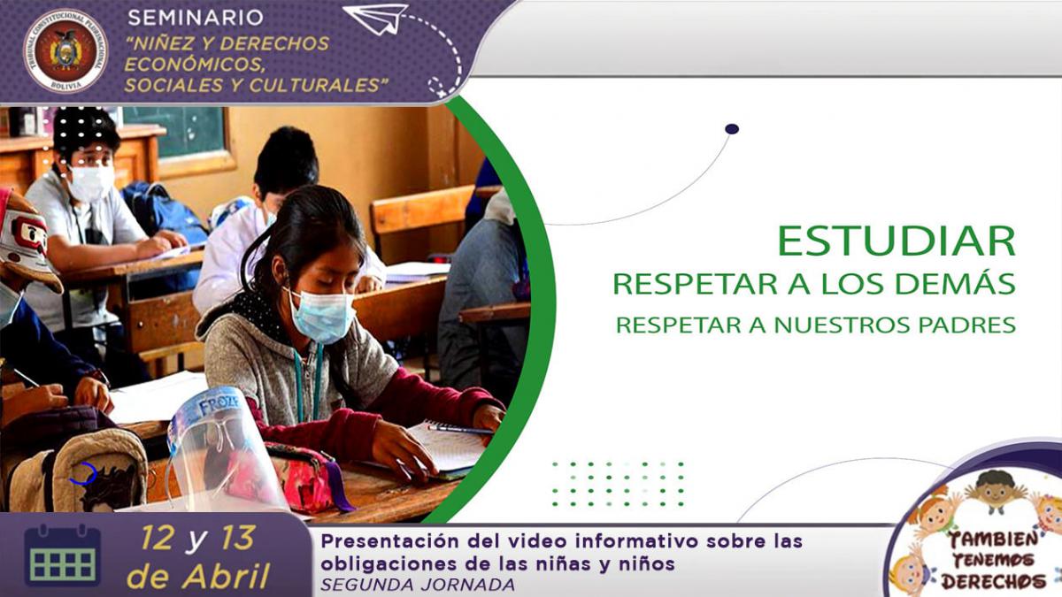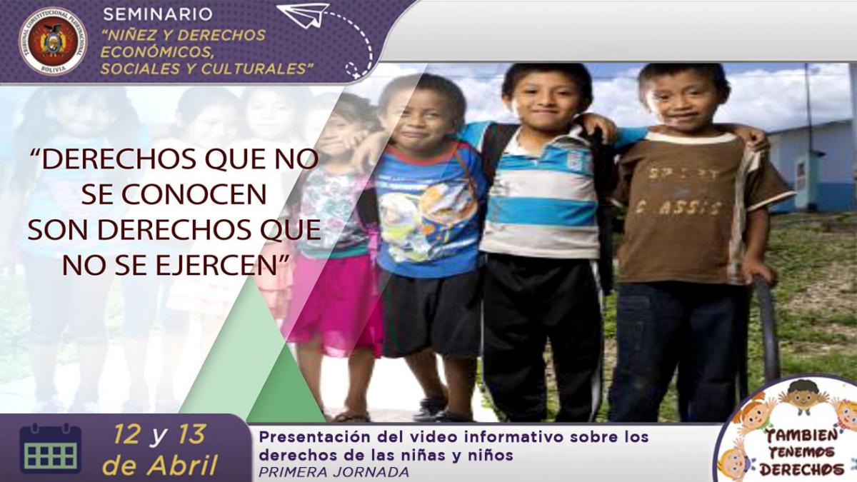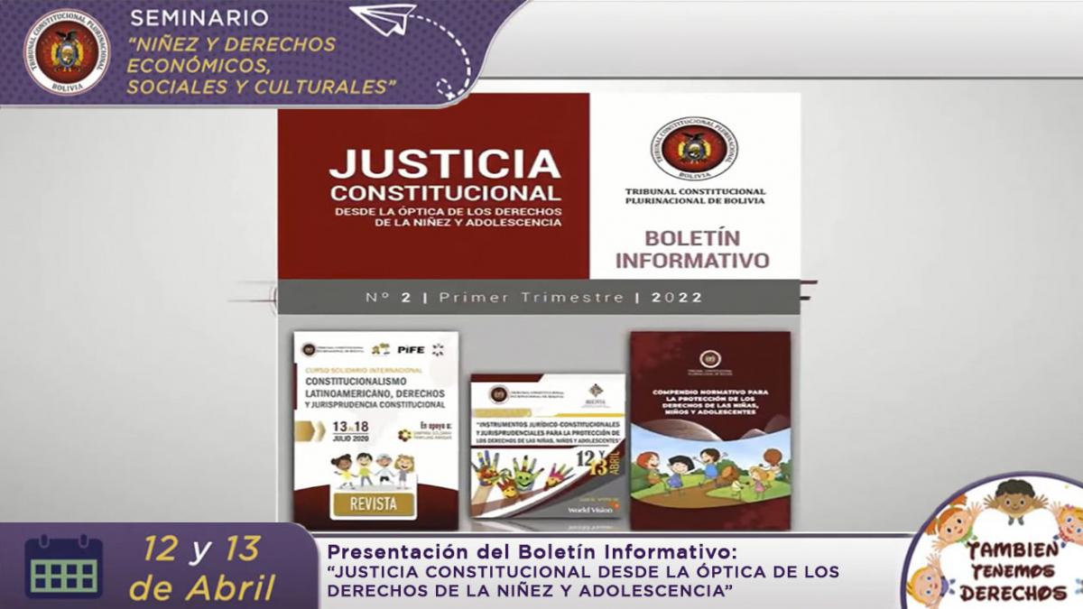 En seminario internacional sobre la “Niñez, Derechos Económicos, Sociales y Culturales” realizado en conmemoración al Día de las niñas y niños del país, el Tribunal Constitucional Plurinacional (TCP) presentó el Boletín informativo “Justicia Constitucional desde la Óptica de los Derechos de la Niñez y Adolescencia”.