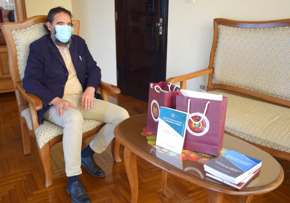 En ocasión del “Día Internacional del Libro y Derecho de Autor”, el Presidente del Tribunal Constitucional Plurinacional, MSc. Paul Enrique Franco Zamora, visitó la Biblioteca y Archivo Nacionales de Bolivia, institución que custodia el patrimonio documental de los bolivianos, donde fue recibido por su Director, Máximo Pacheco Balanza, a quien la autoridad realizó la entrega de un importante aporte de publicaciones de su autoría personal y del TCP.