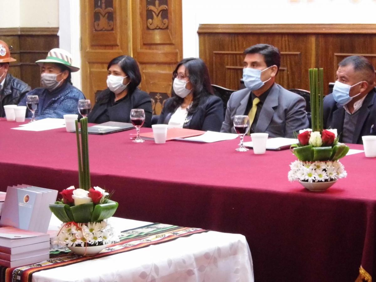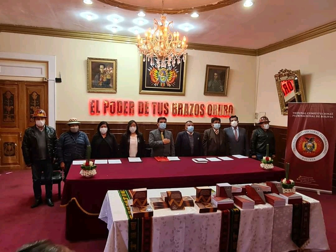 Con una masiva participación de autoridades departamentales, municipales, indígena originario campesino, universitarias y universitarios, la Magistrada del Tribunal Constitucional Plurinacional, MSc. Georgina Amusquivar Moller, realizó la presentación de los libros: “Justicia Constitucional en Tiempos de Pandemia, Sistematización de Jurisprudencia Relevante” de su autoría y la publicación escrita en coautoría con el Abg. Julio Vargas Fuño, denominada “El Estado Plurinacional con Autonomías y el Control Previo de Constitucionalidad de Proyectos de Estatutos o Cartas Orgánicas de las Entidades Territoriales Autónomas (ETA) y las Preguntas de Referendo”.
