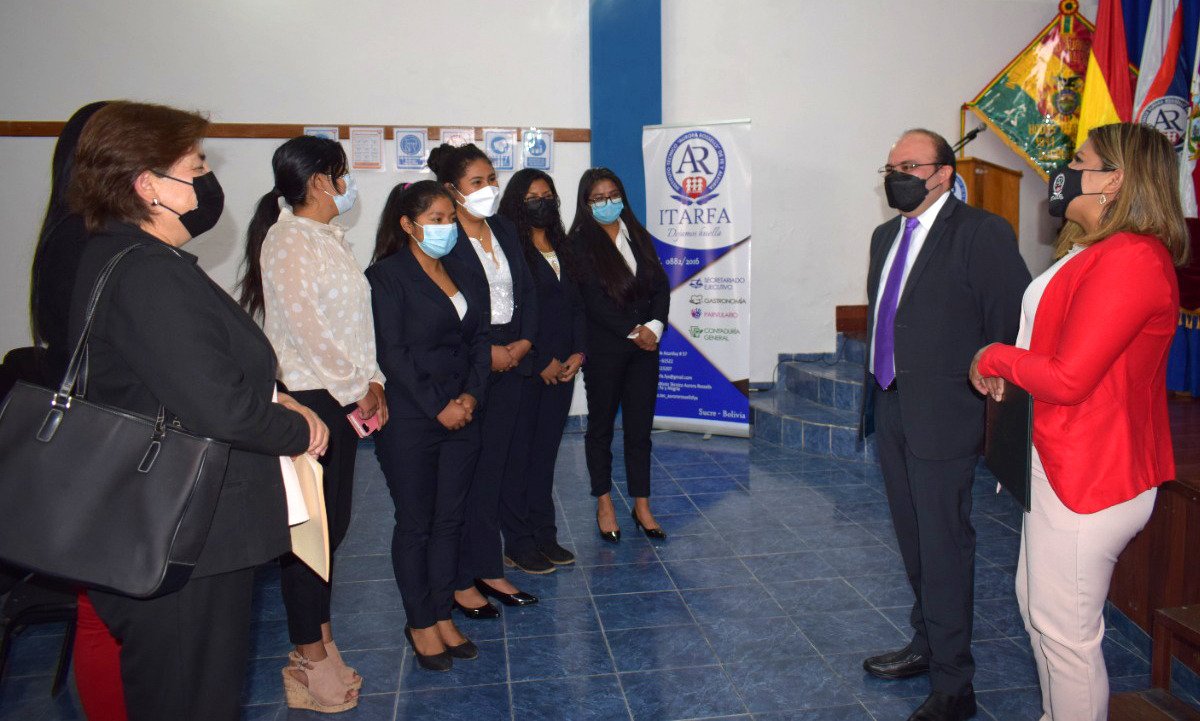 Por su parte, la Rectora del ITARFA, MSc. Mariela Arancibia Seña, indicó que, el acuerdo suscrito coadyuvará en el proceso formativo de las y los estudiantes, porque los institutos técnicos de educación superior trabajan en un 70 % la parte práctica y un 30 % la teórica.