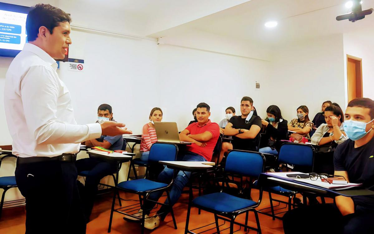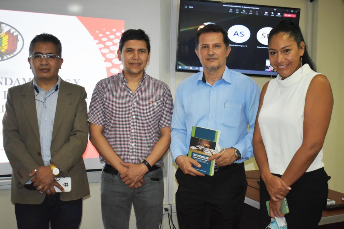 Participaron de la actividad académica, el Rector de la Universidad NUR, Mgr. Williams Shoaie Baker; la Coordinadora de la Carrera de Derecho y Relaciones Internacionales, Mgr. Veronika Sandi Duran, así como las y los estudiantes interesados en la temática.
