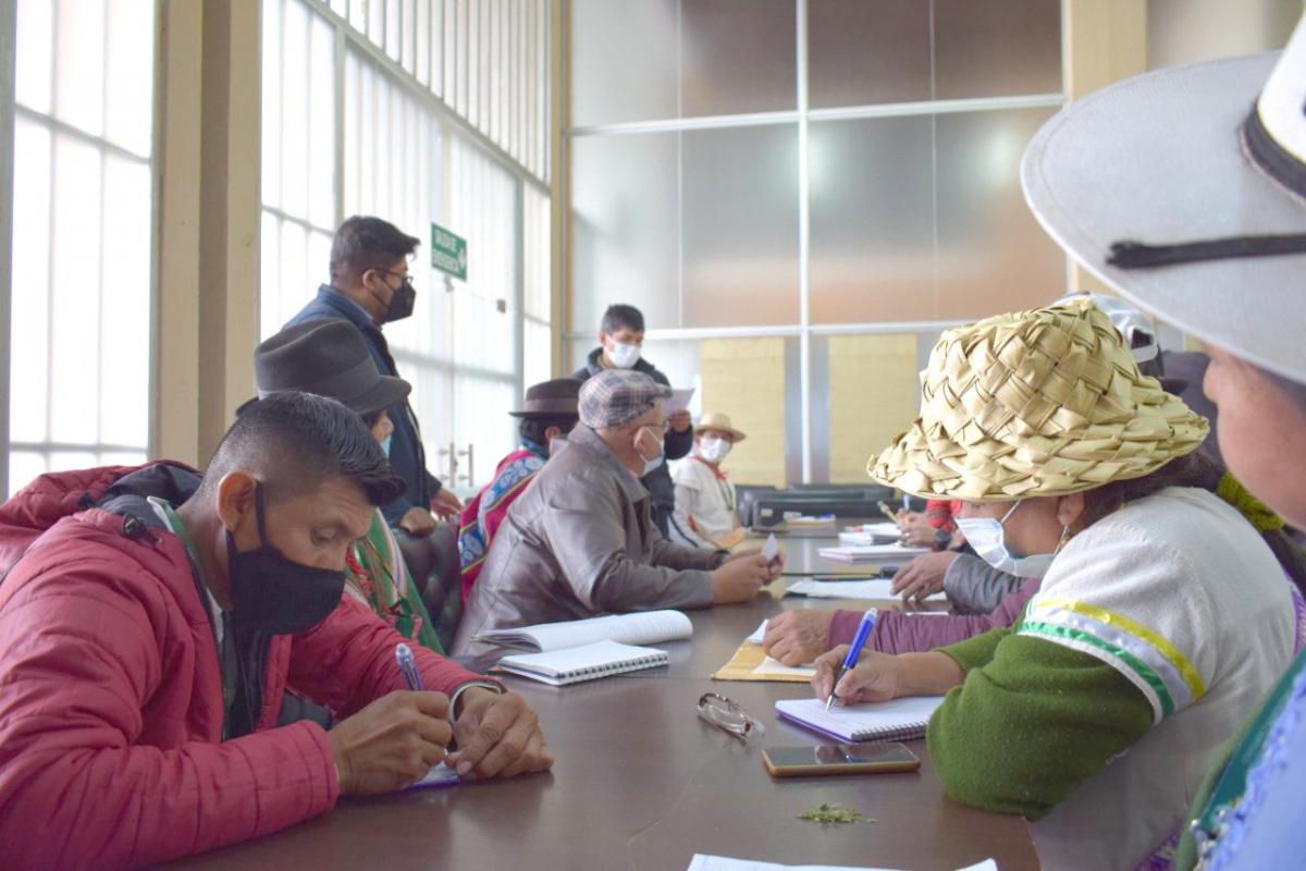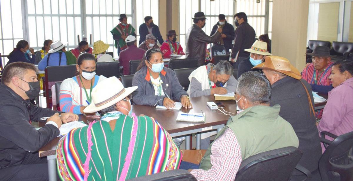Por su parte, las autoridades del Tribunal de Justicia Indígena Originario Campesino de las Naciones y Pueblos: Guaraní, Jacha Carangas, Qhara Qhara, Chiquitana, Jacha Suyu Pakajaqi, Canichacana, Lupaka, Sirionó, Baurs, Sura, Yuracare, Mojeño, Itonama, Guarayu, Movima y Killaqas, manifestaron su satisfacción por la atención recibida en el TCP, puesto que, a diferencia de las otras instituciones donde también solicitaron audiencias, solo en el Tribunal recibieron una respuesta favorable y entablaron una reunión con su máxima autoridad.