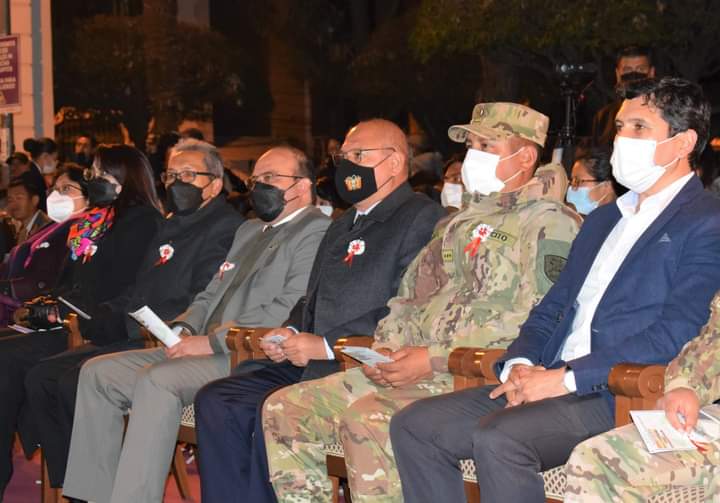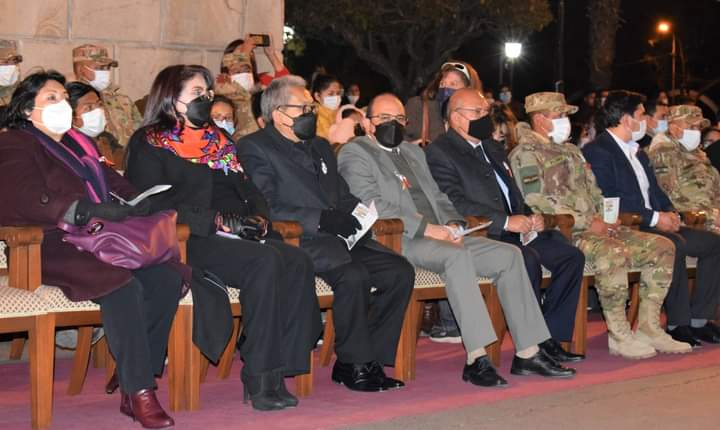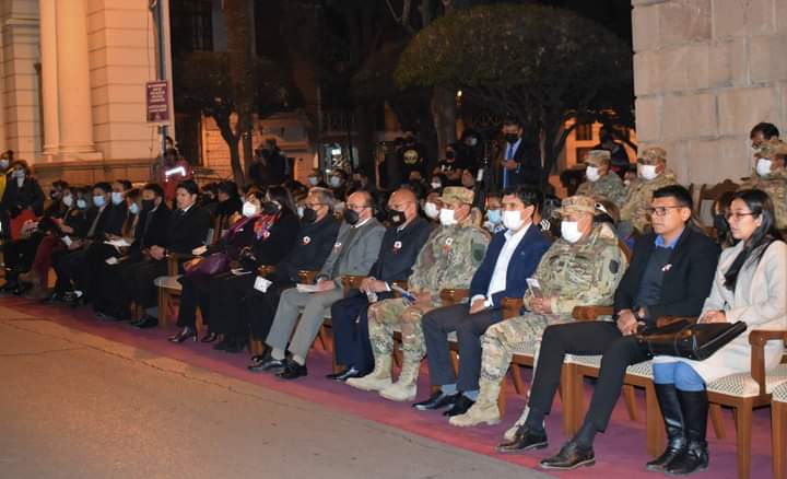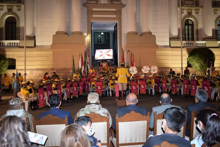 Dando inicio a las actividades en homenaje a la Gesta Libertaria del 25 de Mayo de 1809, el Regimiento de Infantería 2 “Mariscal Antonio José de Sucre” brindó una Retreta de Gala en el frontis del Tribunal Supremo de Justicia, acto en el que participaron el Presidente del Tribunal Constitucional Plurinacional, MSc. Paul Enrique Franco Zamora; la Magistrada, MSc. Karem Lorena Gallardo Sejas y el Magistrado, MSc. Carlos Alberto Calderón Medrano.