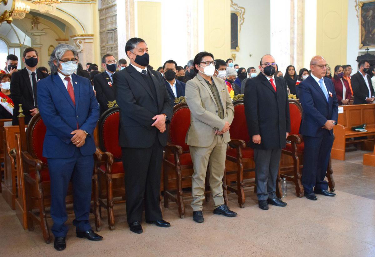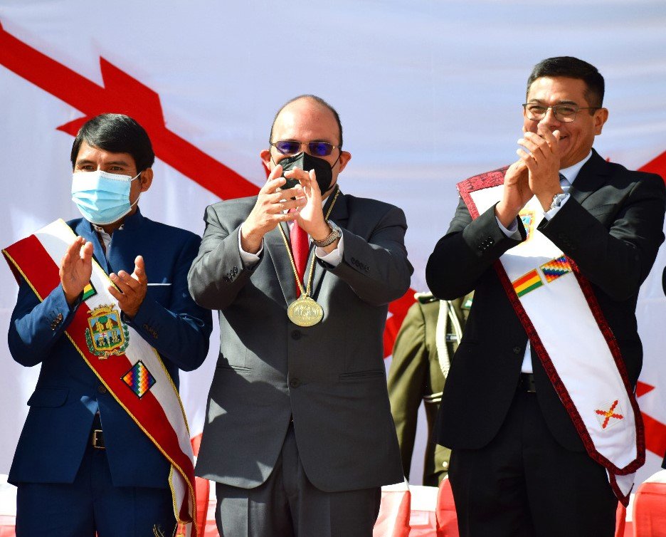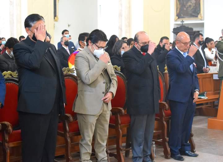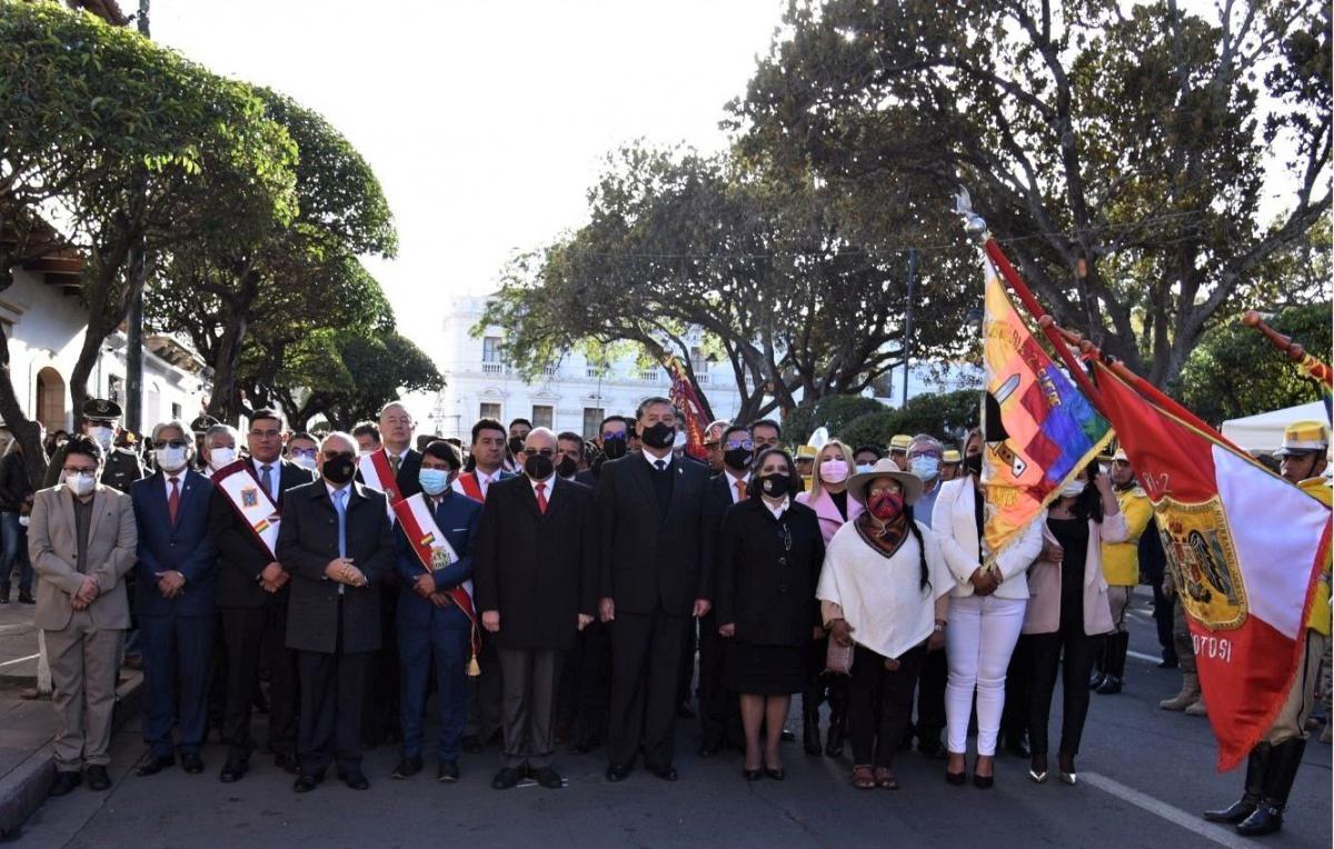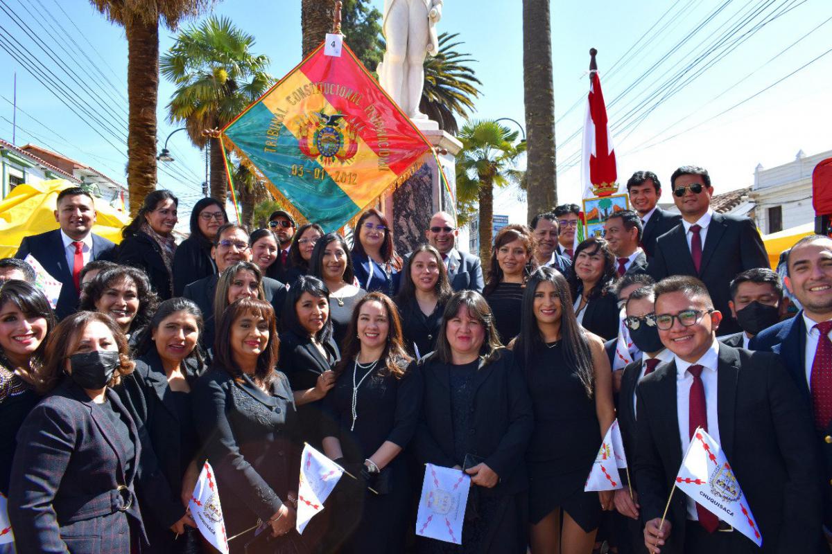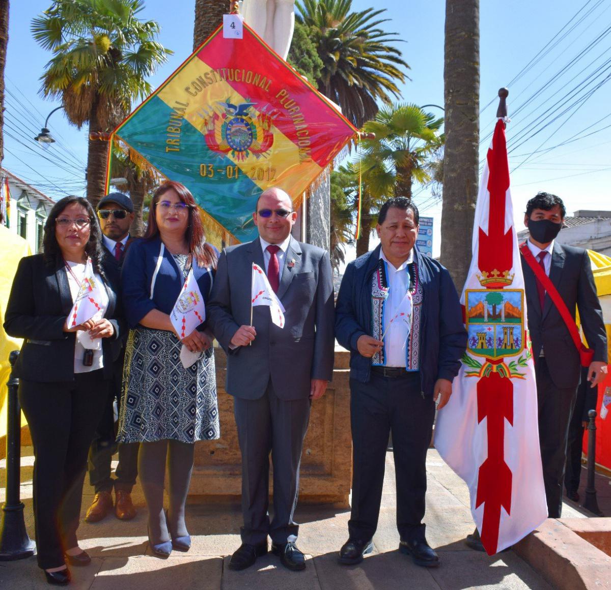 El Presidente del Tribunal Constitucional Plurinacional (TCP), MSc. Paul Enrique Franco Zamora; la Magistrada, MSc. Karem Lorena Gallardo Sejas; el Magistrado, Dr. Petronilo Flores Condori y la Magistrada, MSc. Georgina Amusquivar Moller, junto a las servidoras y servidores públicos, a nombre de la institución, rindieron homenaje a la Gesta Libertaria de América iniciada en esta tierra un 25 de mayo de 1809.