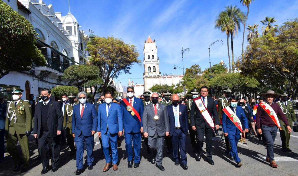 Las actividades programadas por las autoridades municipales y departamentales para conmemorar la Revolución de Charcas, contaron también con la presencia del Presidente del Estado Plurinacional de Bolivia, Luis Arce Catacora, el Vicepresidente del Estado, David Choquehuanca, autoridades del Órgano Ejecutivo, Legislativo, Judicial, Electoral, Alto Mando Policial y Militar, entre otros invitados e invitadas especiales, quienes desde tempranas horas conmemoraron a los protomártires de la independencia que ofrendaron sus vidas para respirar aires de justicia.