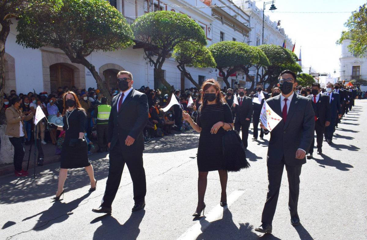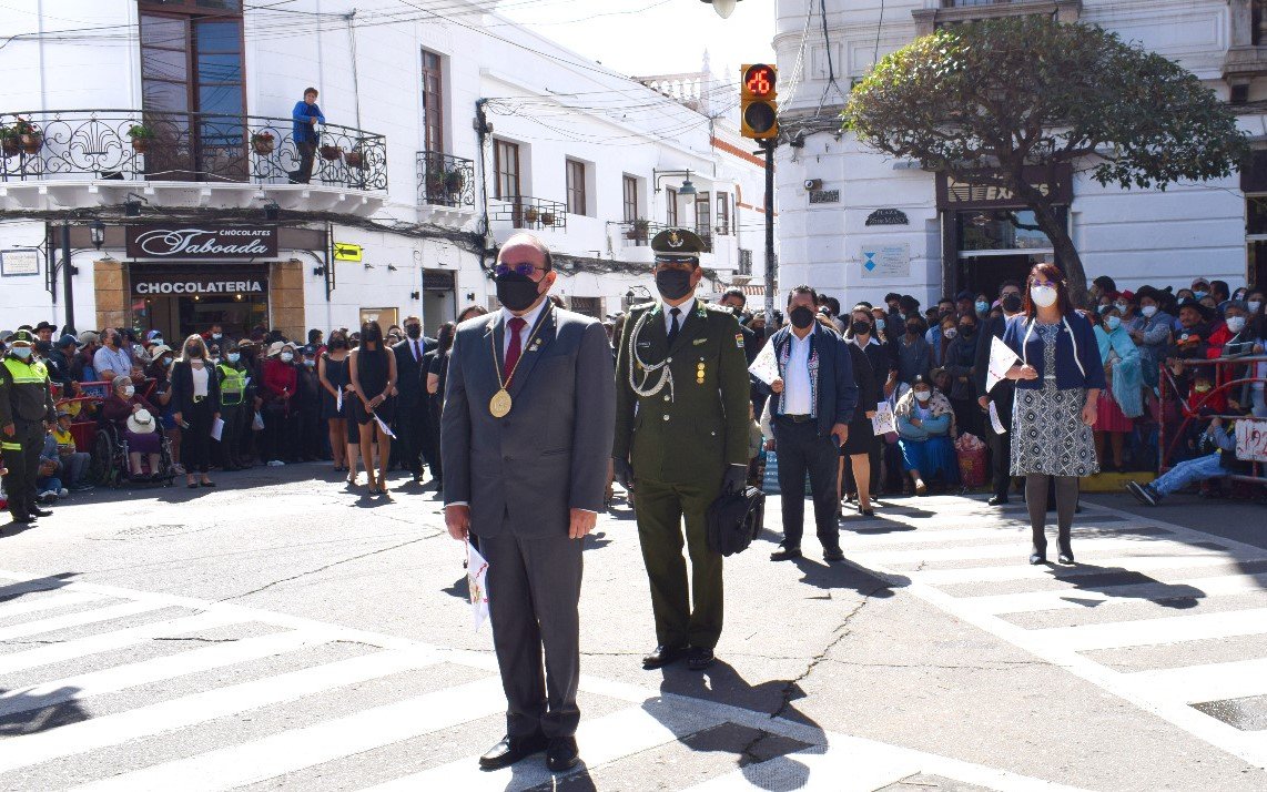 “Hoy rendimos homenaje a los 213 años del Primer Grito Libertario de América Latina, un hito histórico que compromete a las chuquisaqueñas y chuquisaqueños a no perder ese espíritu de libertad que nos caracteriza, porque es nuestra esencia, porque los pensamientos gestados en la Culta Charcas encendieron la chispa de la independencia”, manifestó la máxima autoridad del TCP, Paul Franco Zamora.
