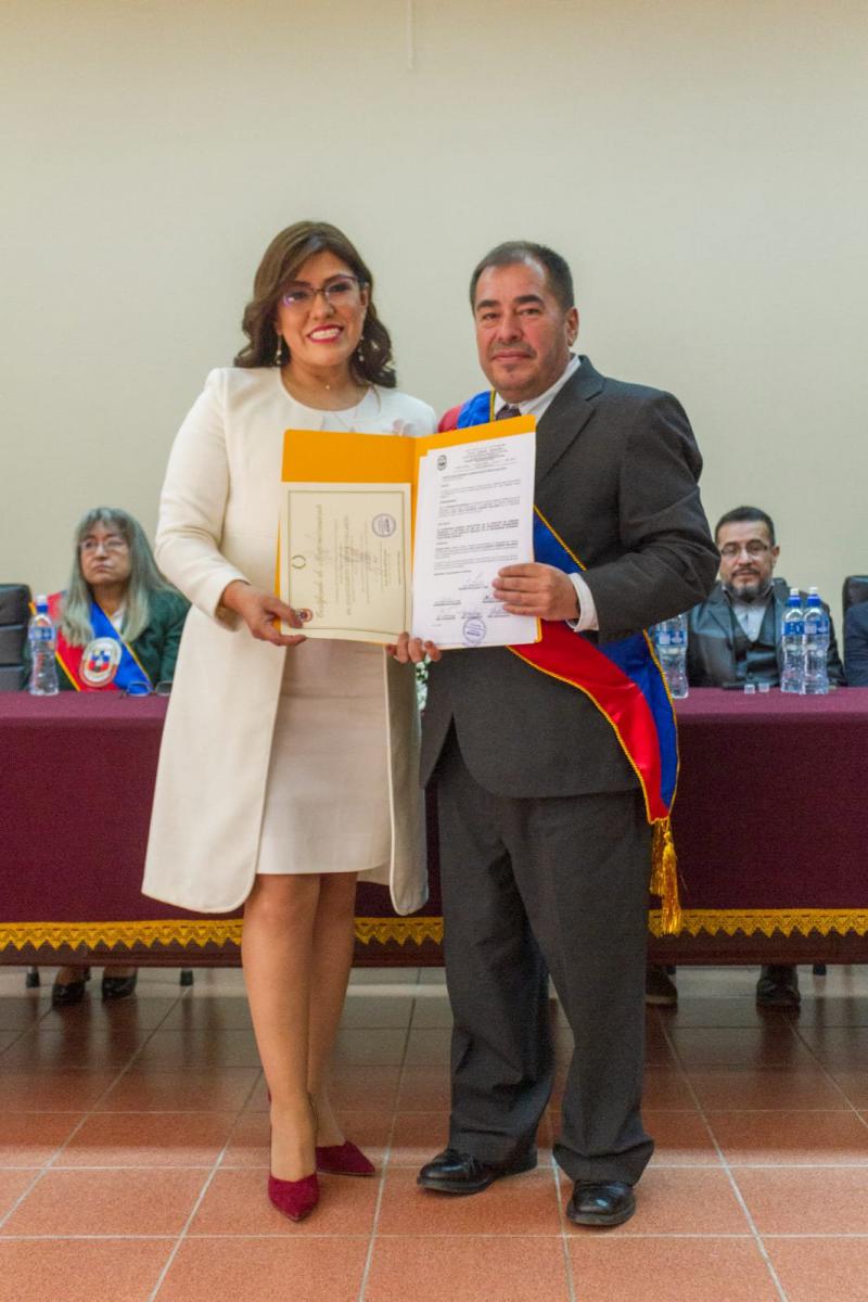 Por su parte la Magistrada, Msc. Elizabeth Cornejo Gallardo, manifestó sentirse honrada por el privilegio de recibir tan alta distinción y ser invitada al acto académico de reconocimiento.