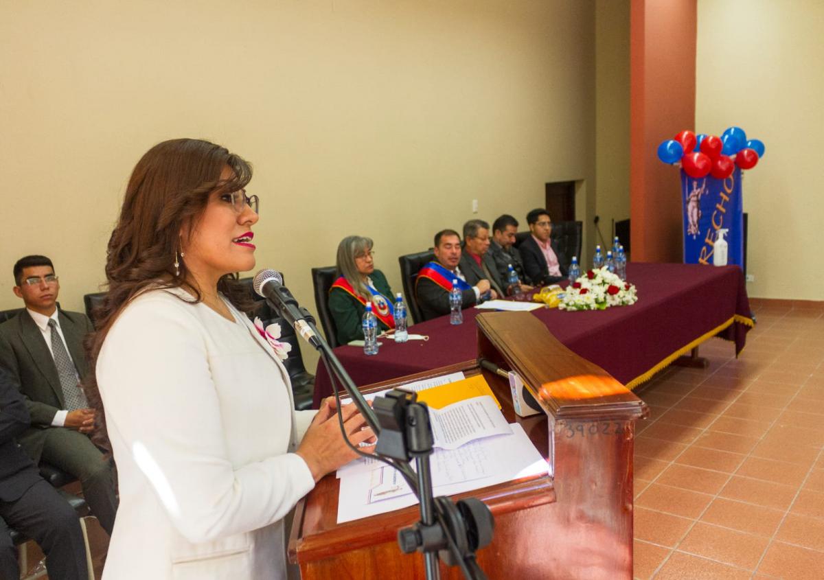 En el marco del 76 aniversario de la creación de la Carrera de Derecho de la Universidad Autónoma Juan Misael Saracho de la ciudad de Tarija, el Honorable Consejo Facultativo de la Facultad de Ciencias Jurídicas y Políticas, otorgó un reconocimiento a la Magistrada del Tribunal Constitucional Plurinacional, MSc. Julia Elizabeth Cornejo Gallardo, en un acto oficial y público realizado el día el miércoles 8 de junio.